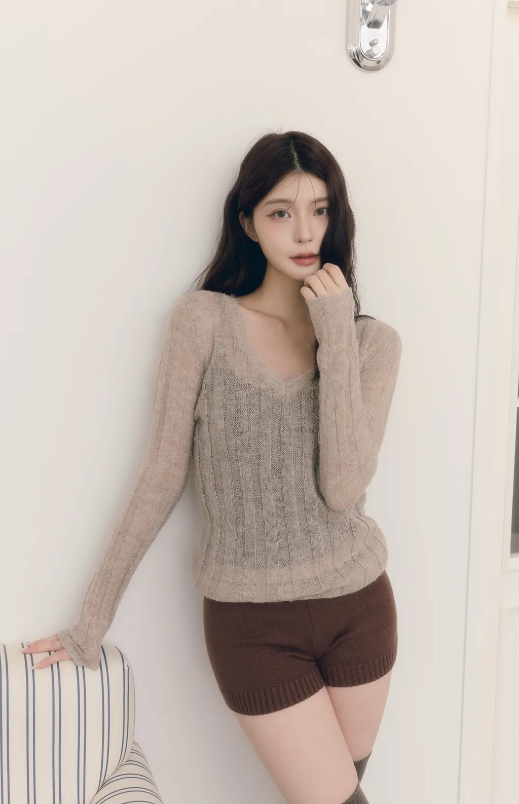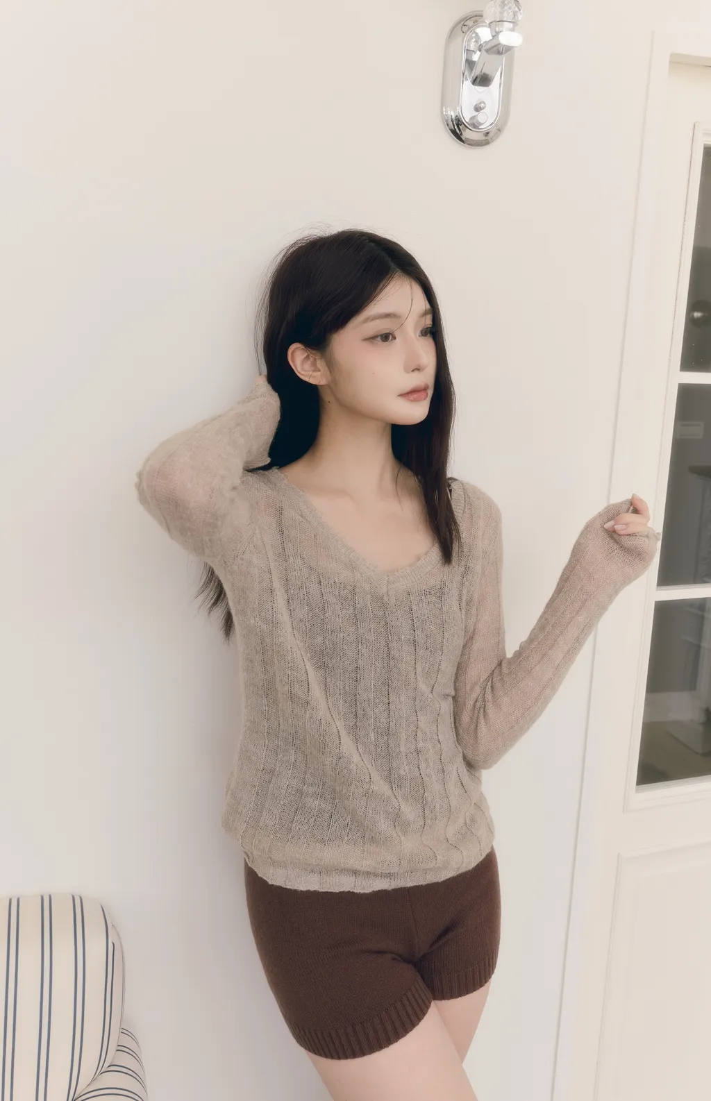 新品現貨商品將於下單後 3~7 個工作天內 依序出貨(不含例假日)Warm Veil|柔感微透 V 領羅紋針織上衣-燕麥色面料:50%Wool 50%Mohair 顏色:燕麥色、灰色尺寸:Free SizeCozy Knit|高腰柔軟修身針織短褲-深咖棕冬季推薦柔軟針織短褲 採用寬幅螺紋收腰設計透過垂直的線條感在視覺上達到收腹效果完美隱藏小腹高腰剪裁加上針織的高彈特性不僅能穿出大長腿 更能提供無束縛的舒適感簡約版型設計 日常可搭配針織上衣、襯衫也能與運動上衣混搭 秋冬單穿或搭配褲襪都很適合是一件不挑風格 好搭配的秋冬休閒短褲面料:Cotton顏色:深咖棕、深灰色尺寸:S、M、L、XL model: 身高166cm、體重49kg、胸圍81cm、腰58cm、臀圍91cm(實穿S號)(手工測量,誤差±3cm皆正常範圍)(商品皆為實拍,與原色差異極小,室內光與戶外陽光顏色下略有些微差異,特殊色每個人認知能力不同,請三思後下單)