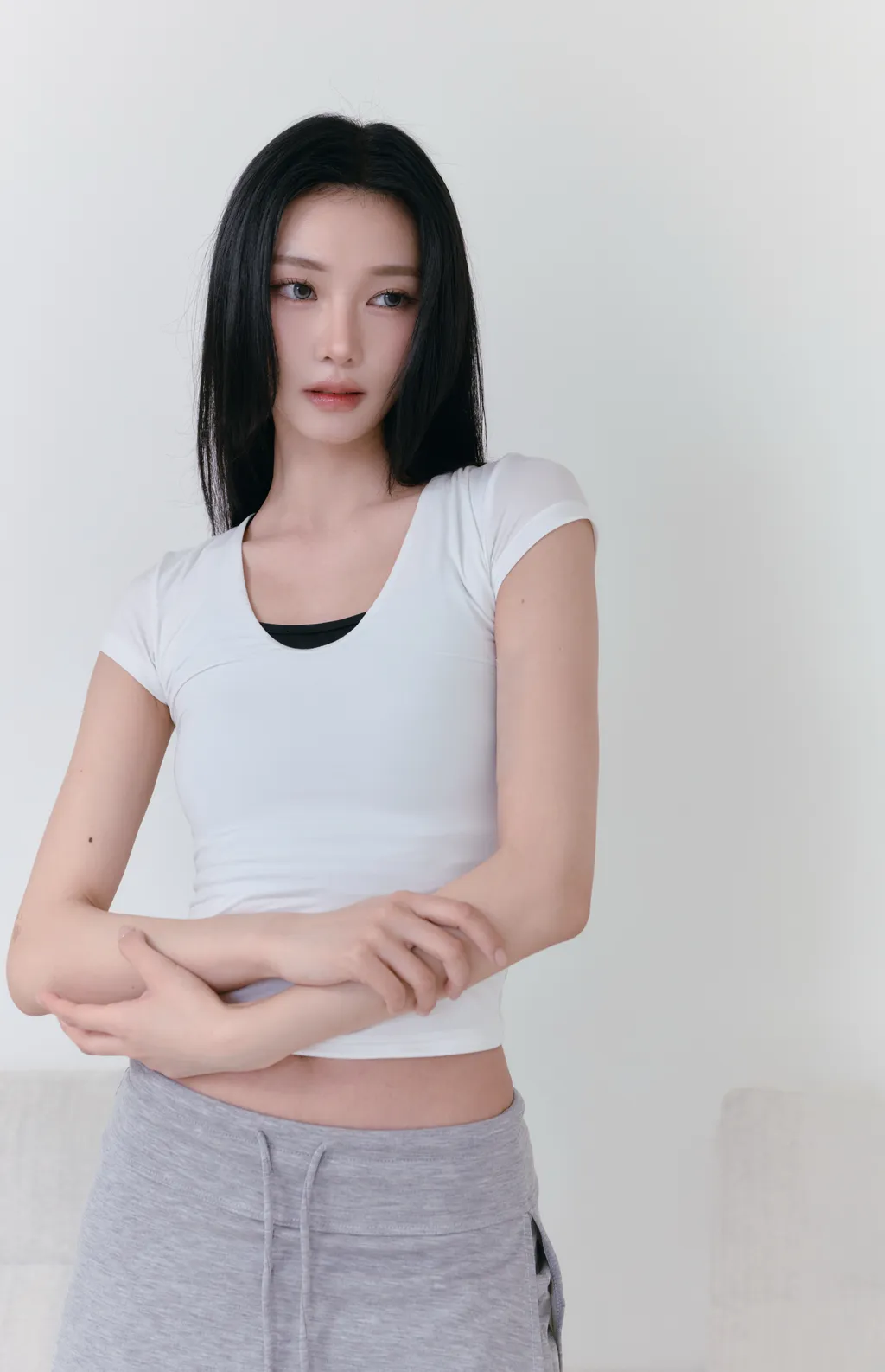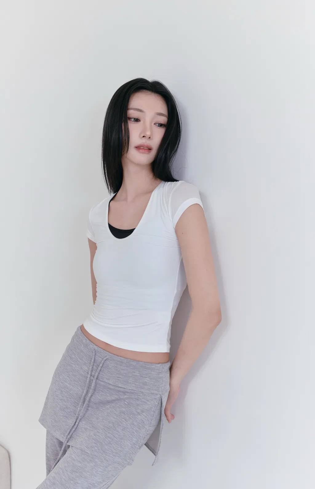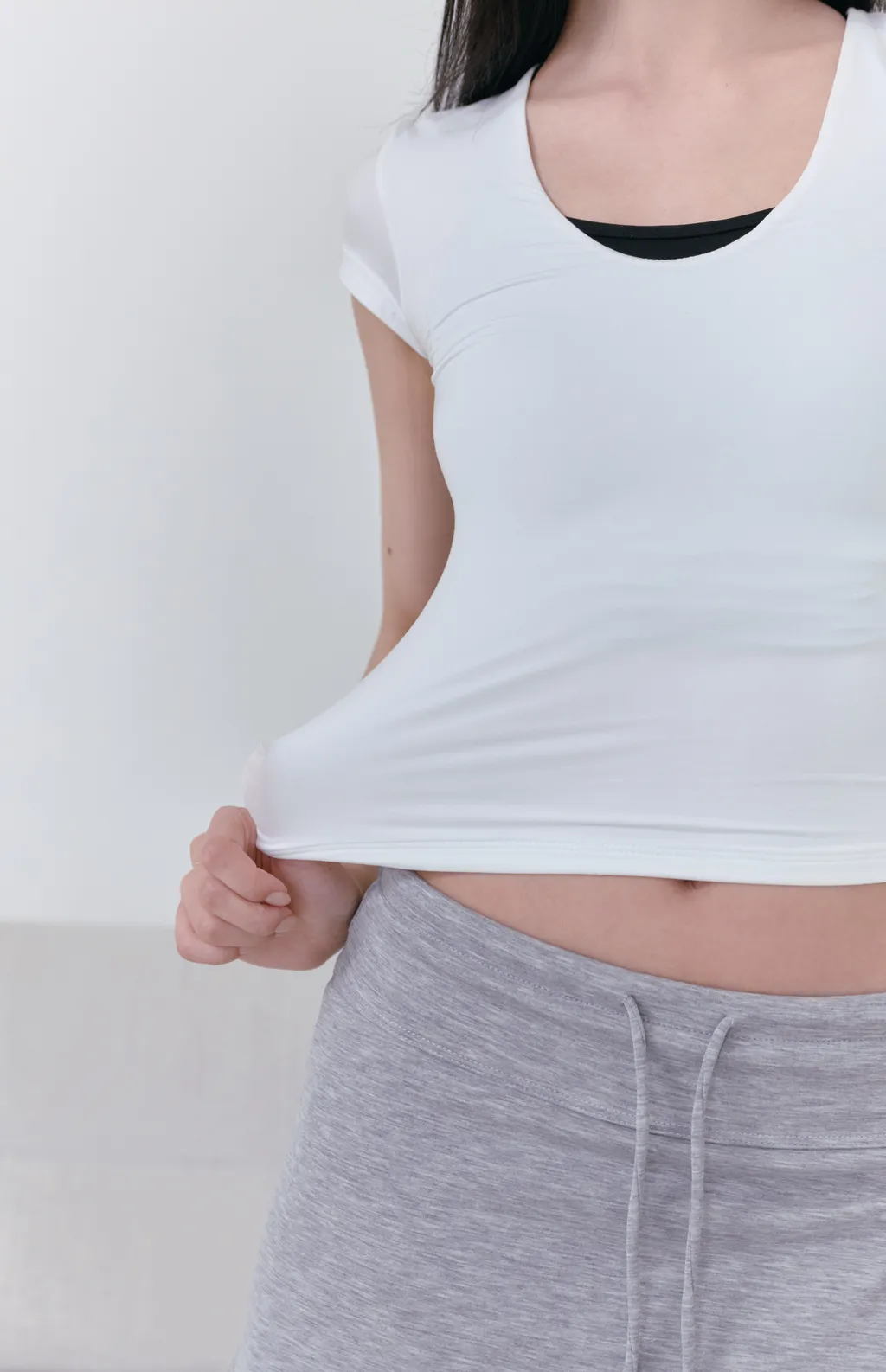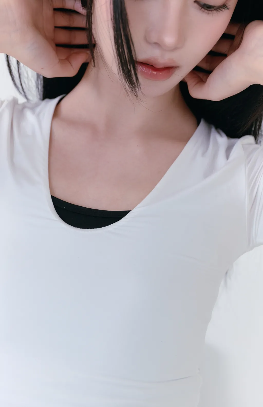 Cool Fit|冰感彈力U領修身短袖上衣-白色
