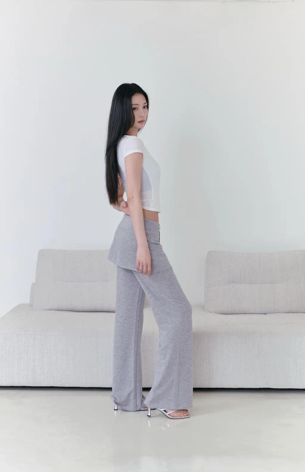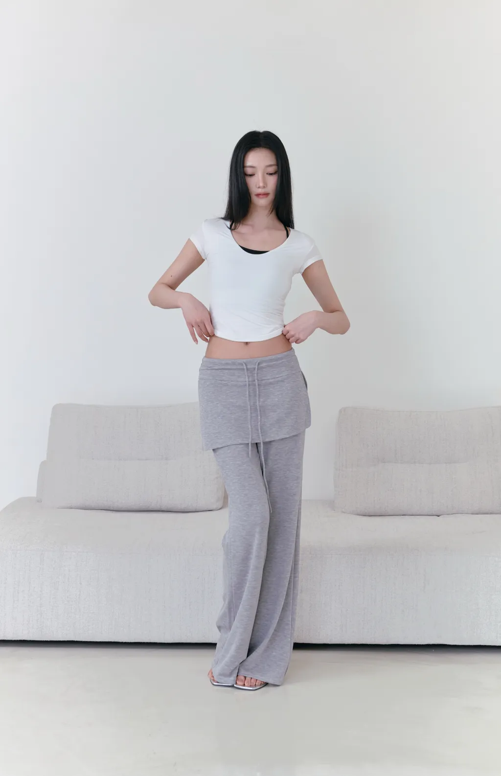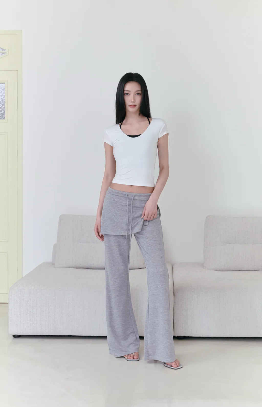Skirt Flare|棉感遮臀裙擺運動喇叭褲-灰色