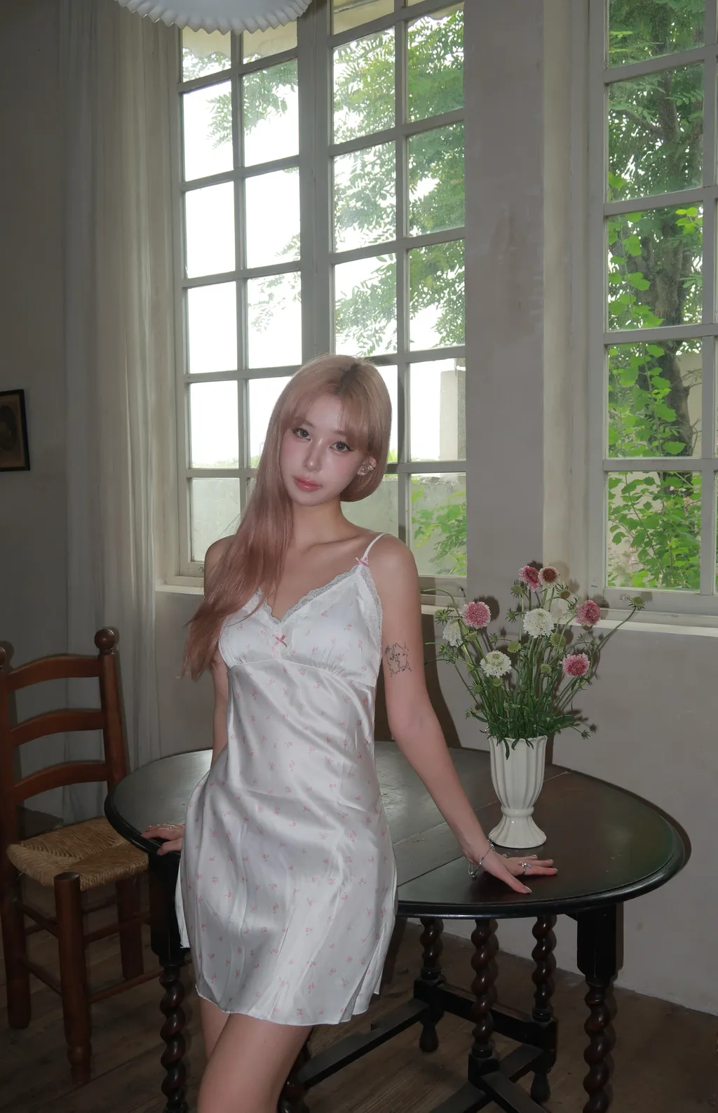Midnight Petal|花園少女浪漫碎花 連身罩衫緞面睡衣-粉色冰絲感親膚面料 柔軟不悶熱可拆式胸墊和可調節肩帶設計後背彈性鬆緊帶 舒適不勒肉胸前點綴蕾絲花邊 溫柔顯氣質四款顏色皆為不同花紋印花 好看不撞款 顏色:白綠色 、紫色 、粉色 、黑白碎花尺寸:M、L (手工測量,誤差±3cm皆正常範圍)(商品皆為實拍,與原色差異極小,室內光與戶外陽光顏色下略有些微差異,特殊色每個人認知能力不同,請三思後下單)