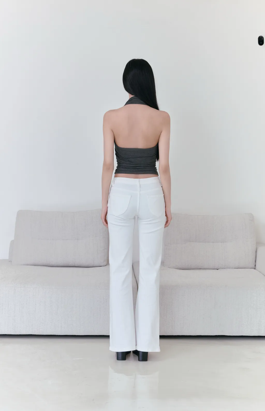 低腰剪裁搭配微喇褲管設計
