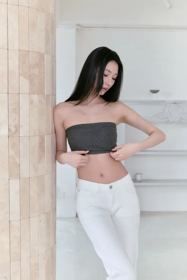 百搭不挑上衣 配短版上衣露出一點腰線 比例超好看