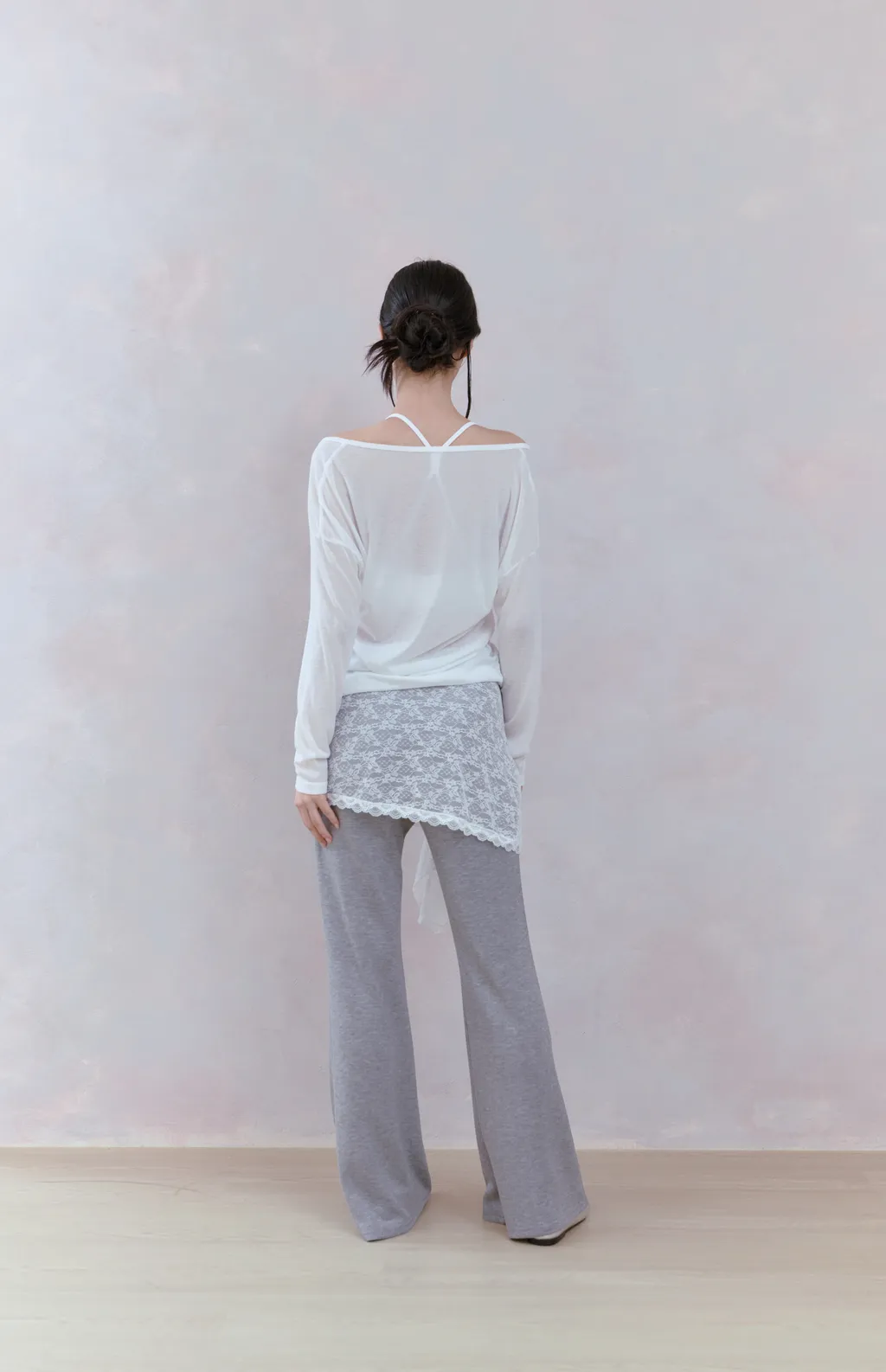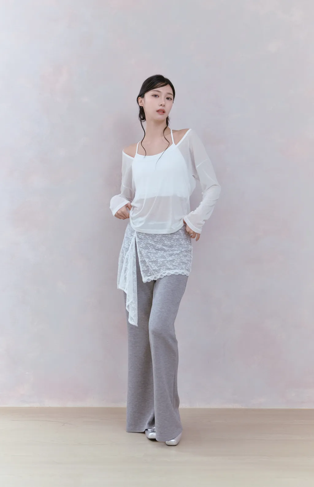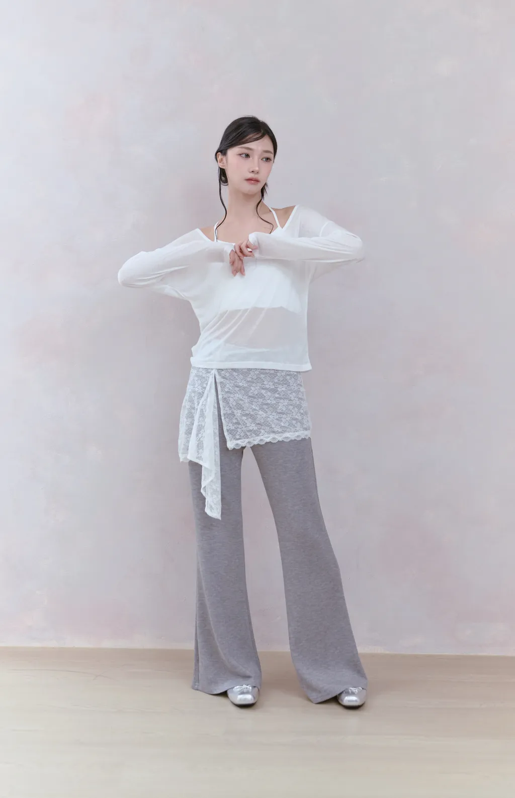面料:85%Polyester 15%ViscoseSheer Grace|輕透蕾絲舞裙棉感微喇運動長褲-霧灰