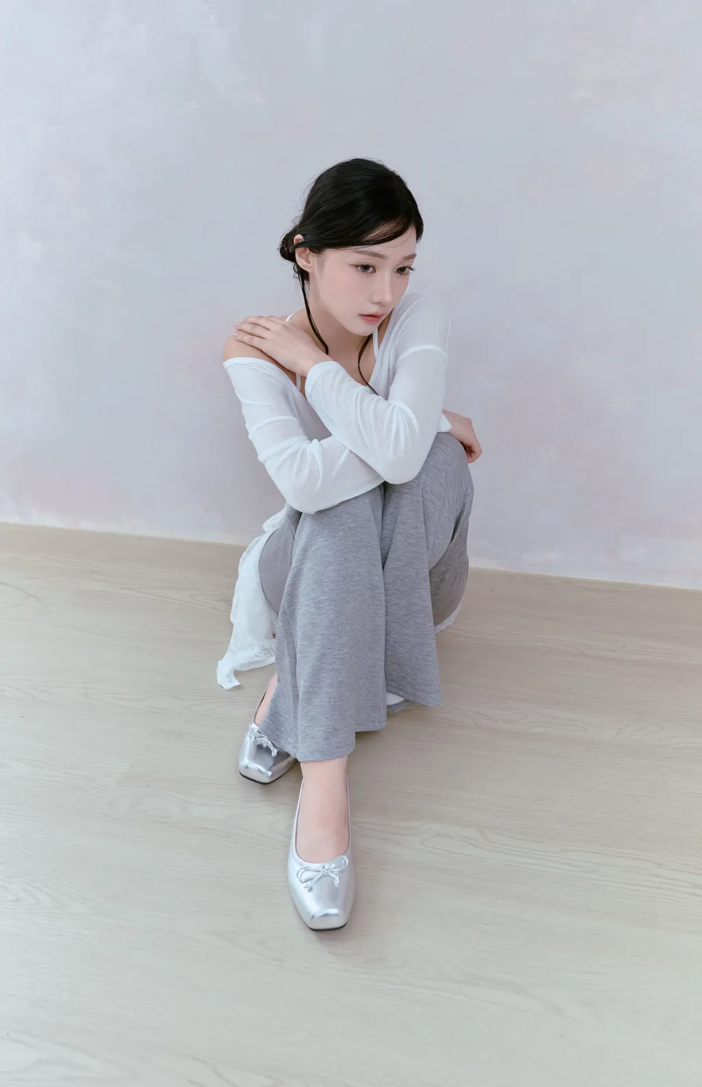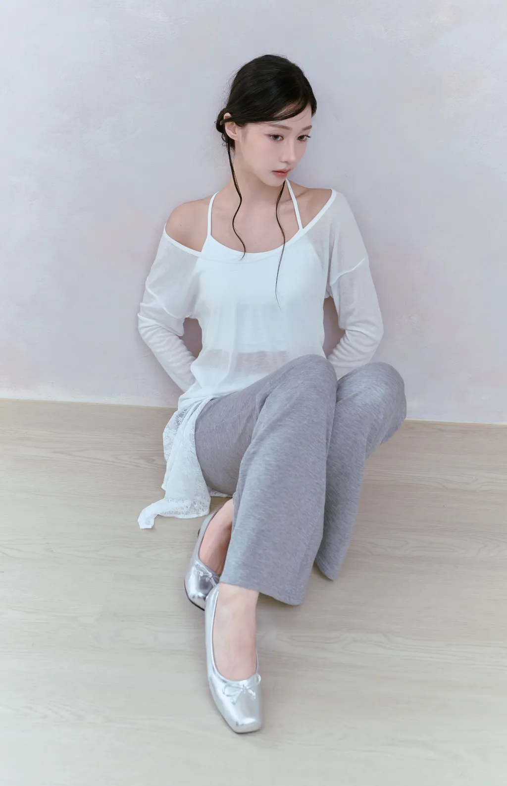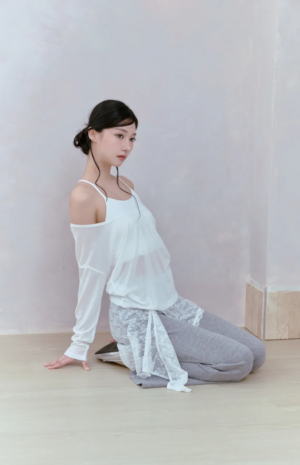 面料:85%Polyester 15%ViscoseSheer Grace|輕透蕾絲舞裙棉感微喇運動長褲-霧灰
