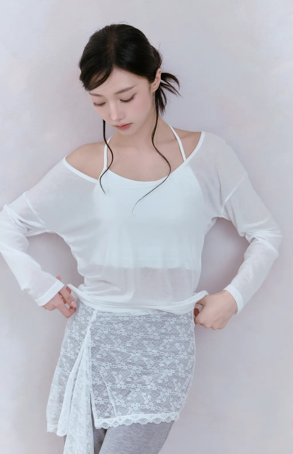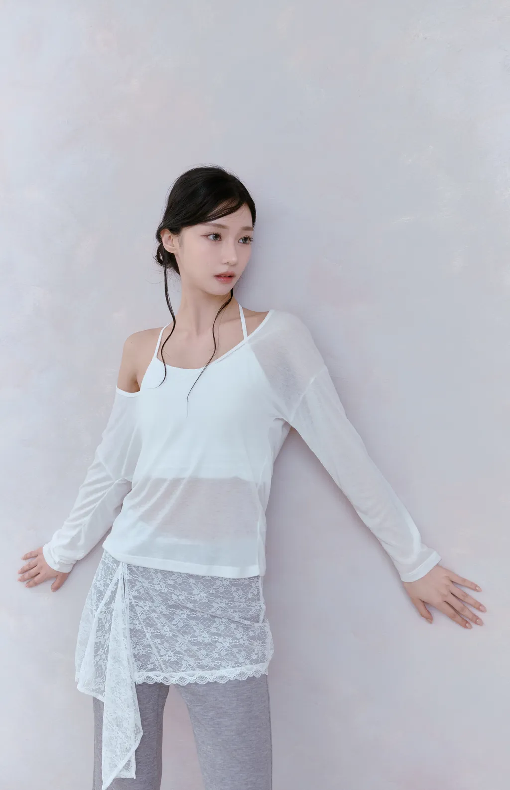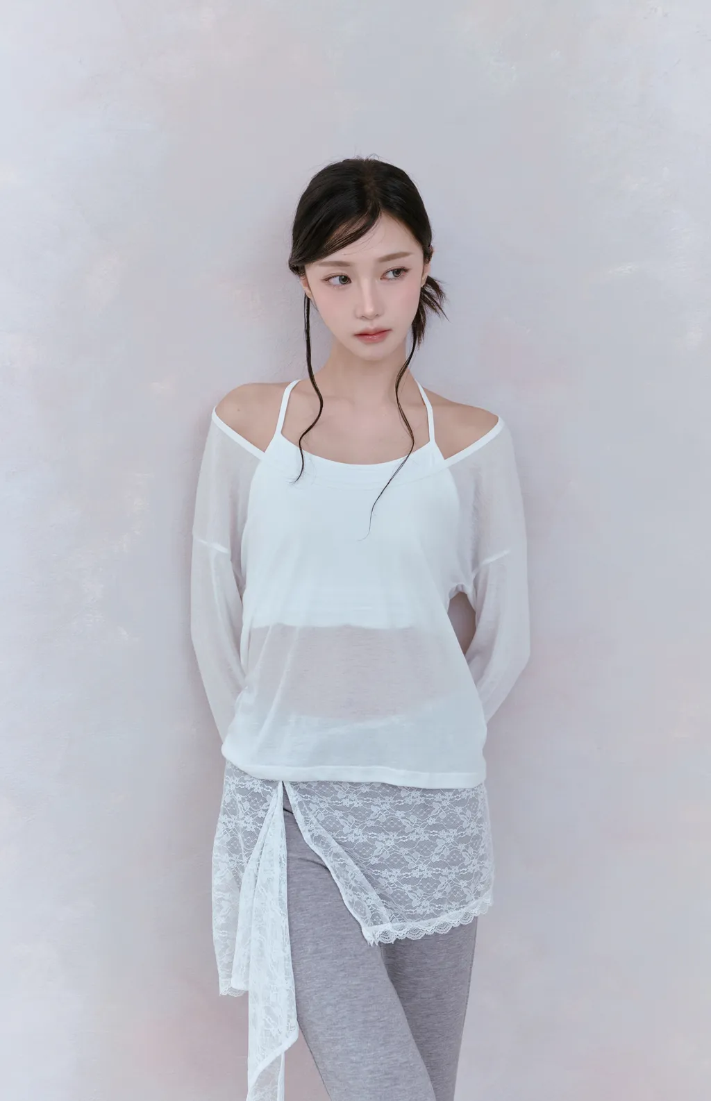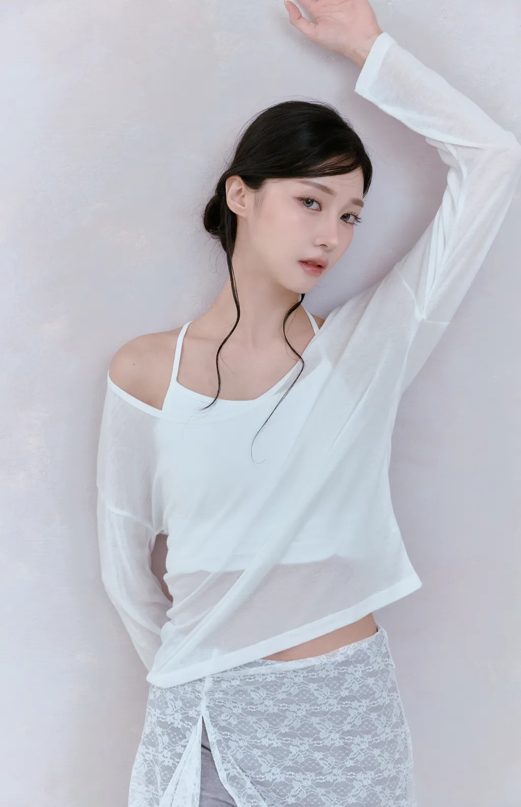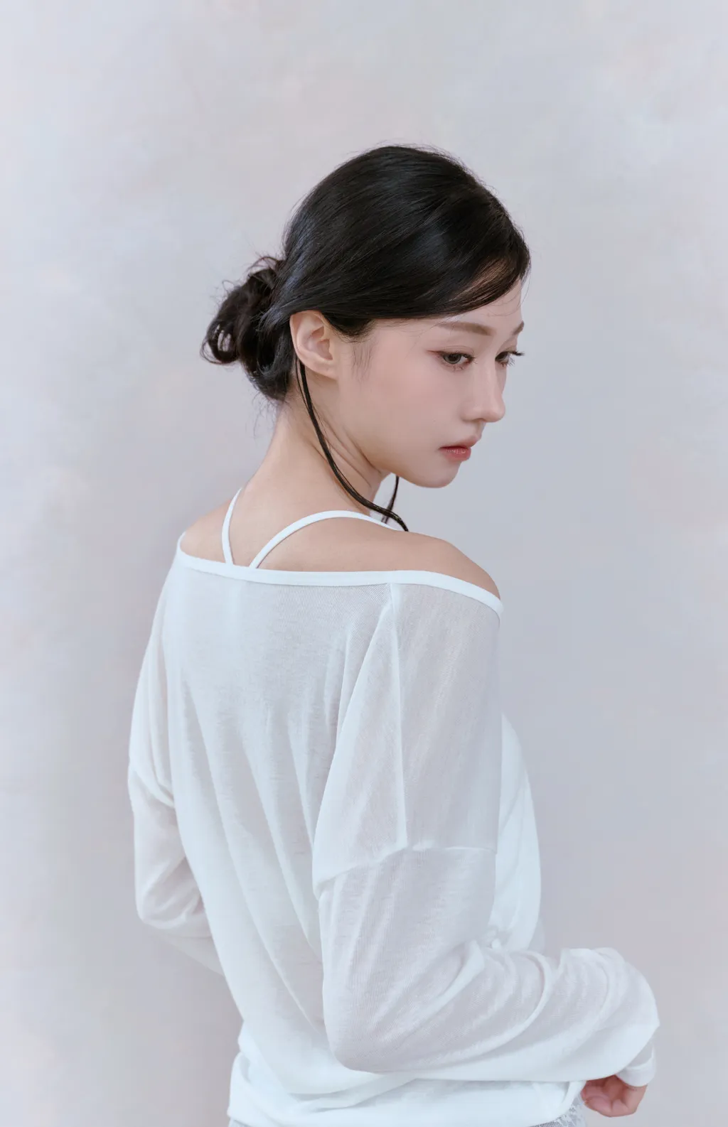 Sheer Drape|微透天絲寬鬆大U領長袖外搭上衣-雲白色