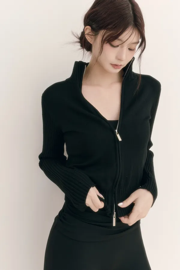Daily Zip|高領短版雙拉鍊針織外套-海軍藍闆娘私心推薦必收針織外套非常時髦的高領拉鍊設計採用修身短版剪裁 自然提升腰線營造俐落的視覺比例可隨意調整領口高度與下擺開口自由切換高領保暖與微露鎖骨的造型細膩的針織面料 袖子與下擺處特別設計垂直坑條紋理 具高彈性與100%親膚度 面料:50%Viscose, 22%Nylon, 28%Polyester顏色:海軍藍、灰色、黑色尺寸:S、M、L、XLmodel: 身高166cm、體重49kg、胸圍81cm、腰58cm、臀圍91cm(實穿S號)(手工測量,誤差±3cm皆正常範圍)(商品皆為實拍,與原色差異極小,室內光與戶外陽光顏色下略有些微差異,特殊色每個人認知能力不同,請三思後下單)