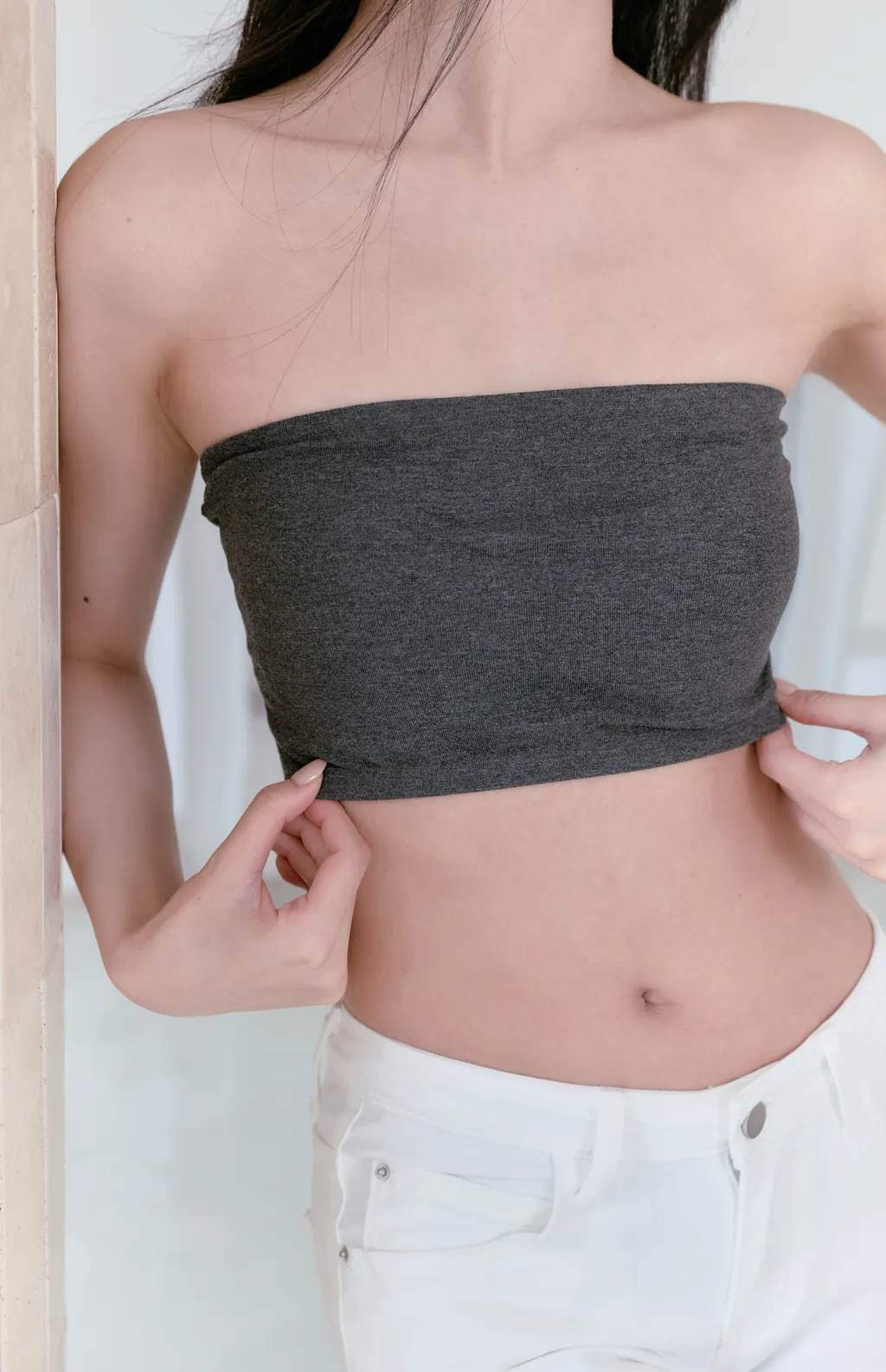 SoftSkin|無肩帶貼合平口內衣-深灰色/黑色