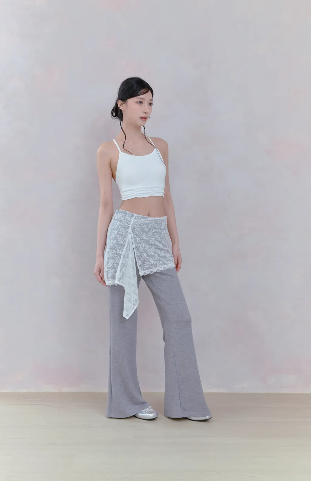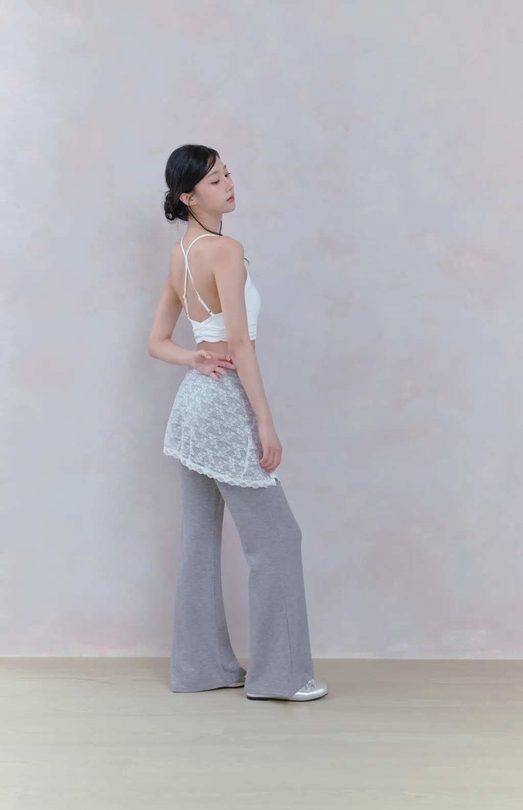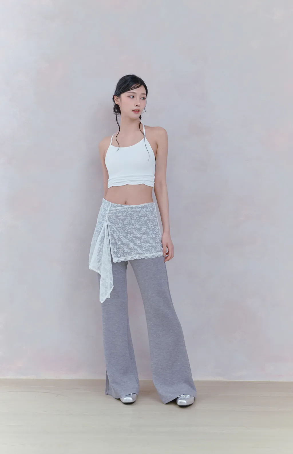 面料:Nylon/SpendexSheer Grace|輕透蕾絲舞裙棉感微喇運動長褲-霧灰