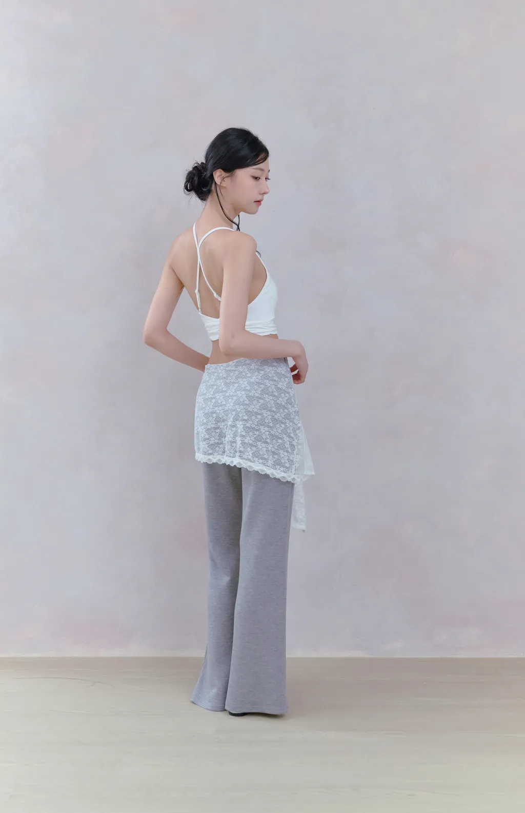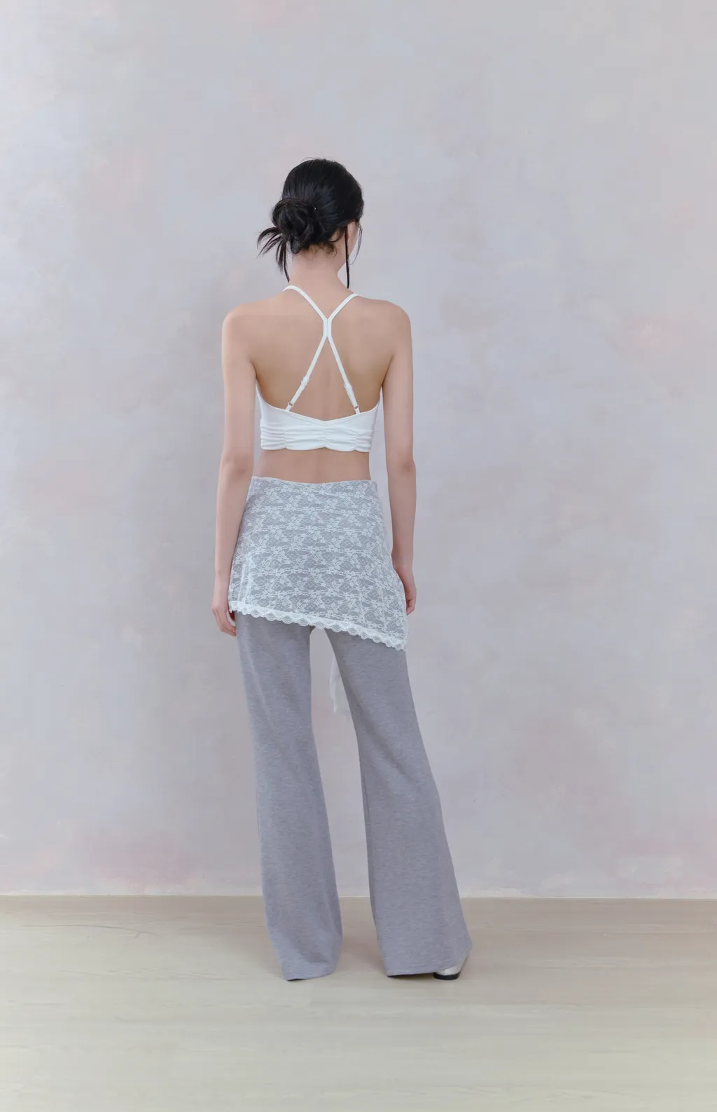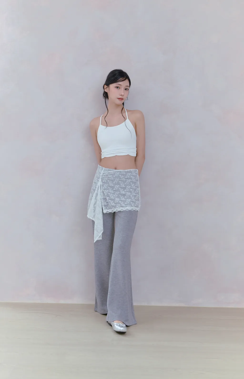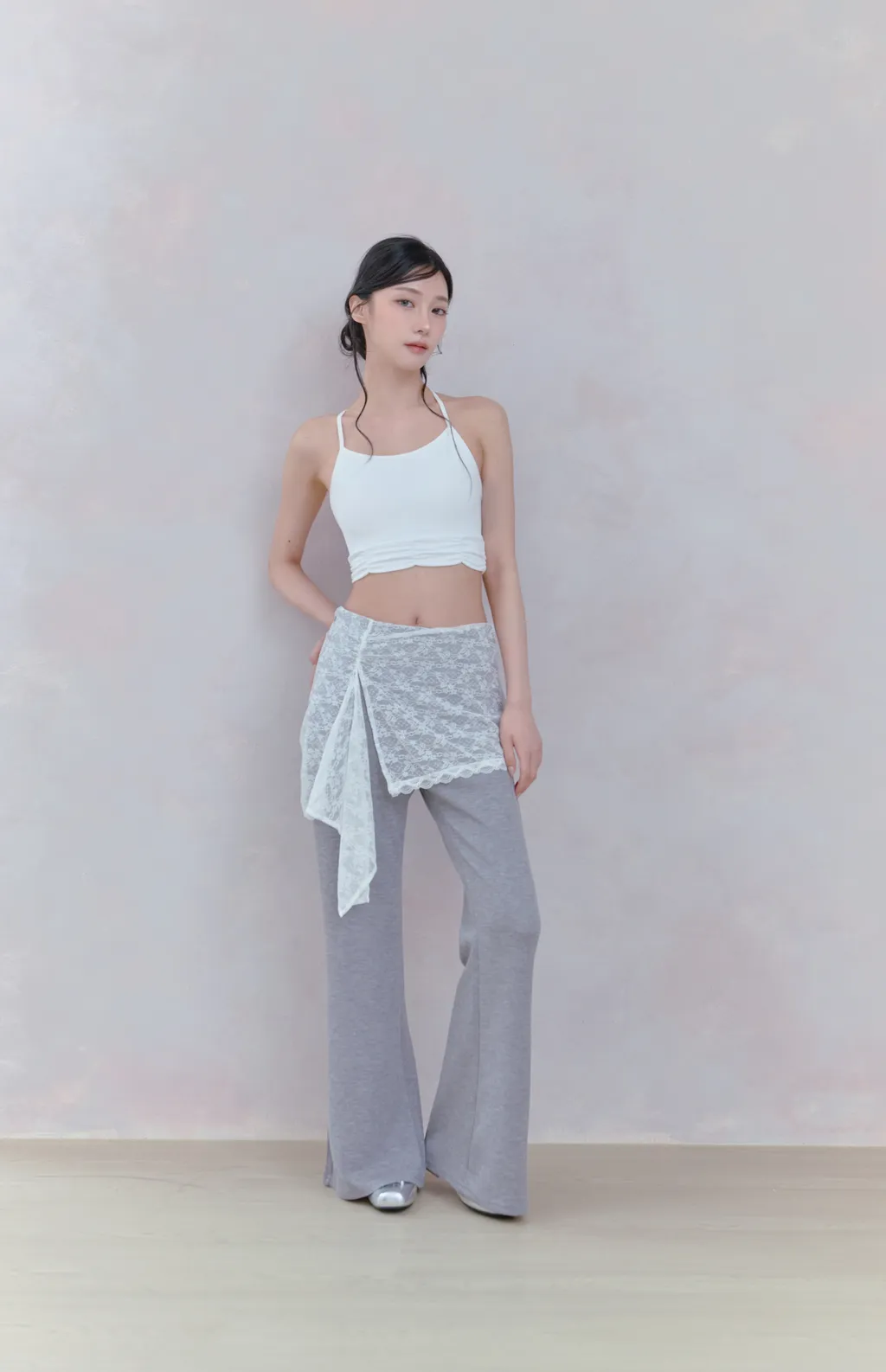 面料:Nylon/SpendexSheer Grace|輕透蕾絲舞裙棉感微喇運動長褲-霧灰