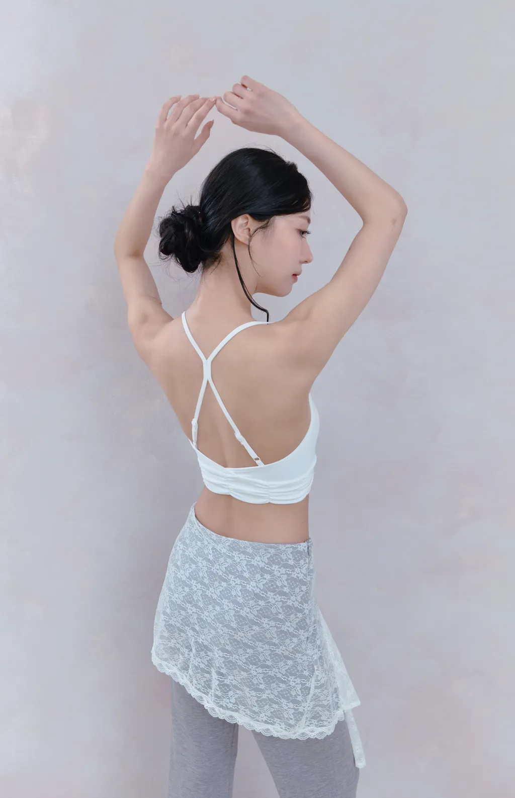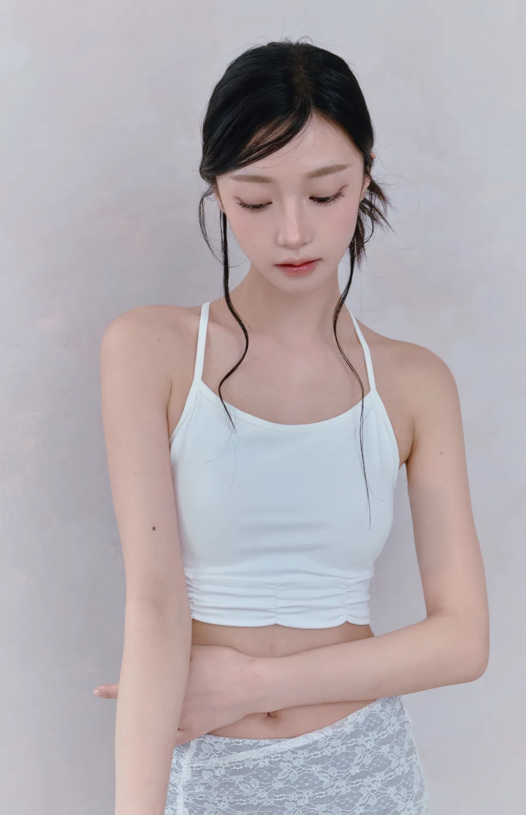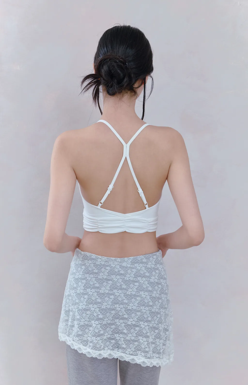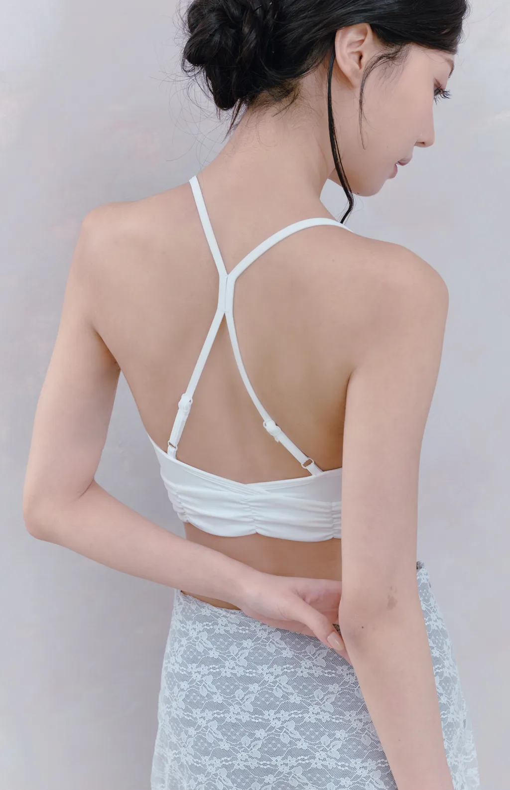 Bloom Strap|花瓣下擺細肩裸感內建胸墊Bra Top-白色