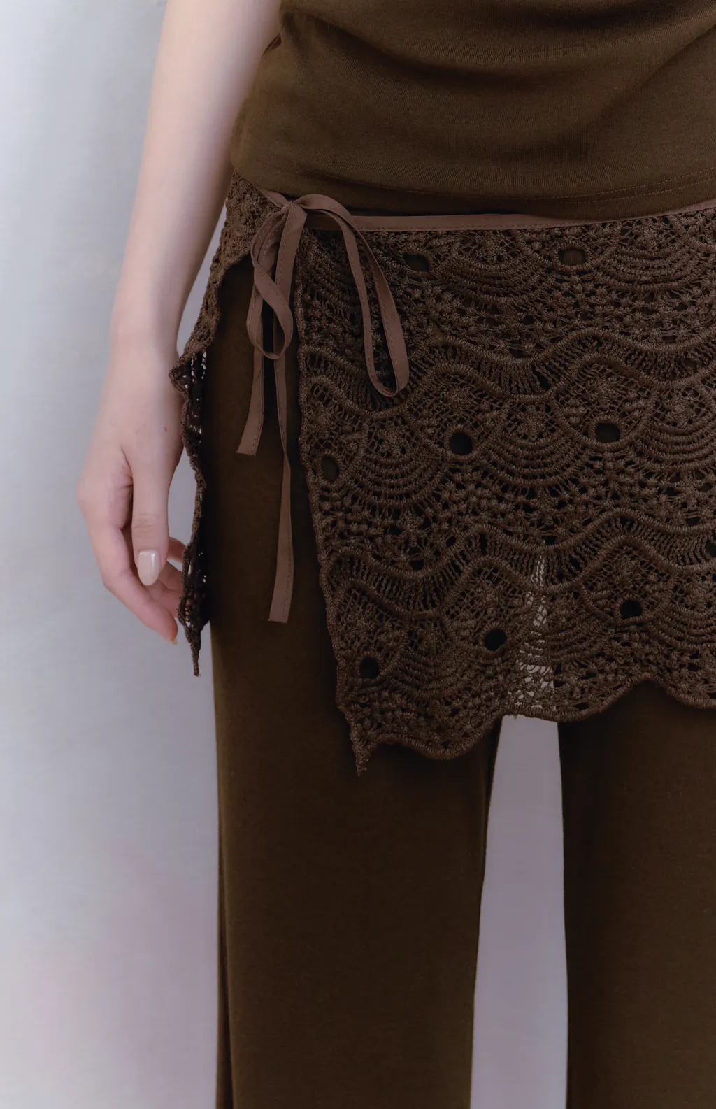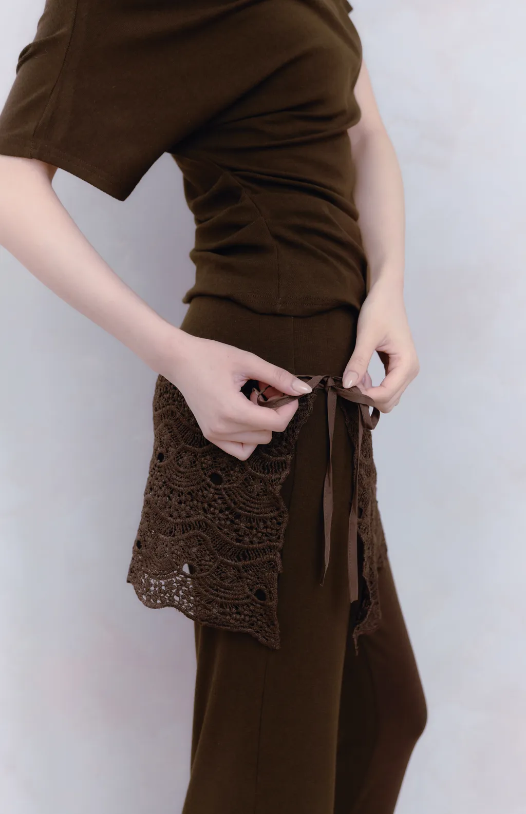 這套最搶眼的細節是腰間的蕾絲覆裙
