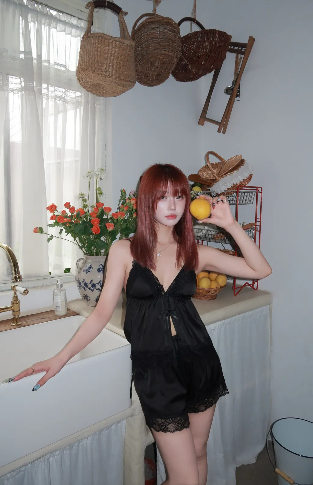 Soft Hour|蝴蝶綁帶蕾絲睡衣套裝-黑色