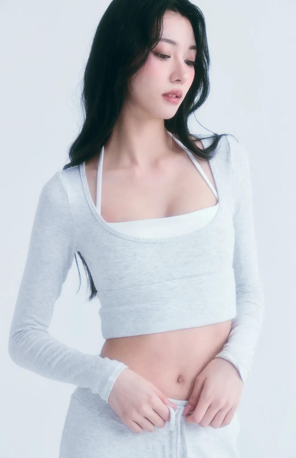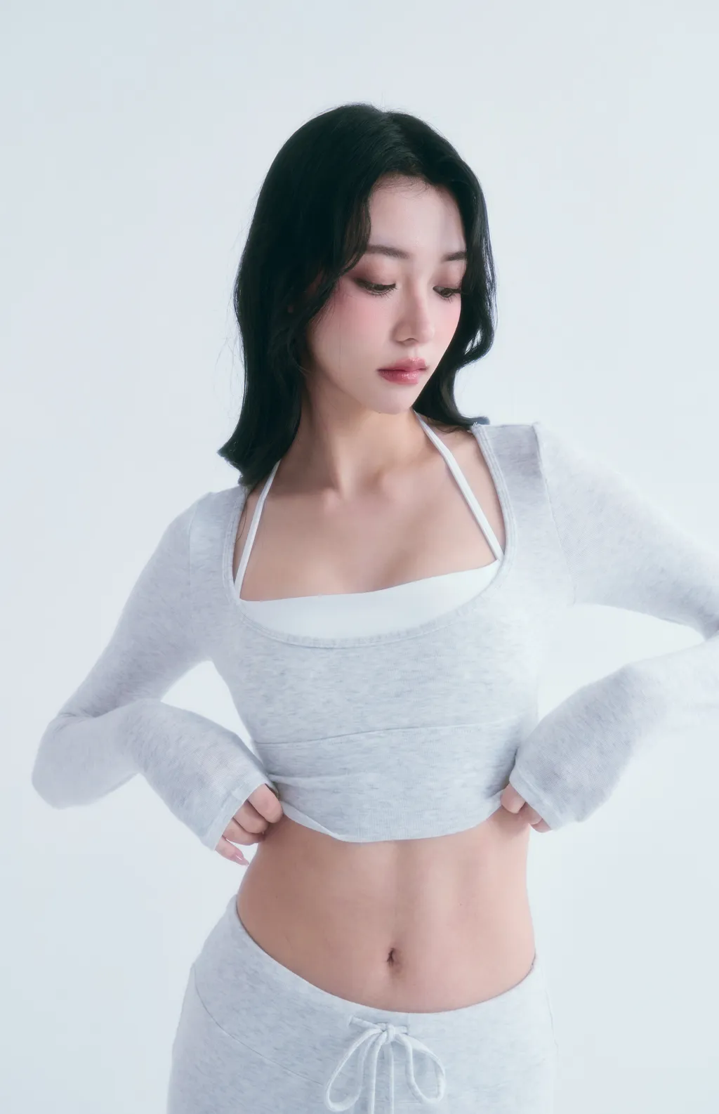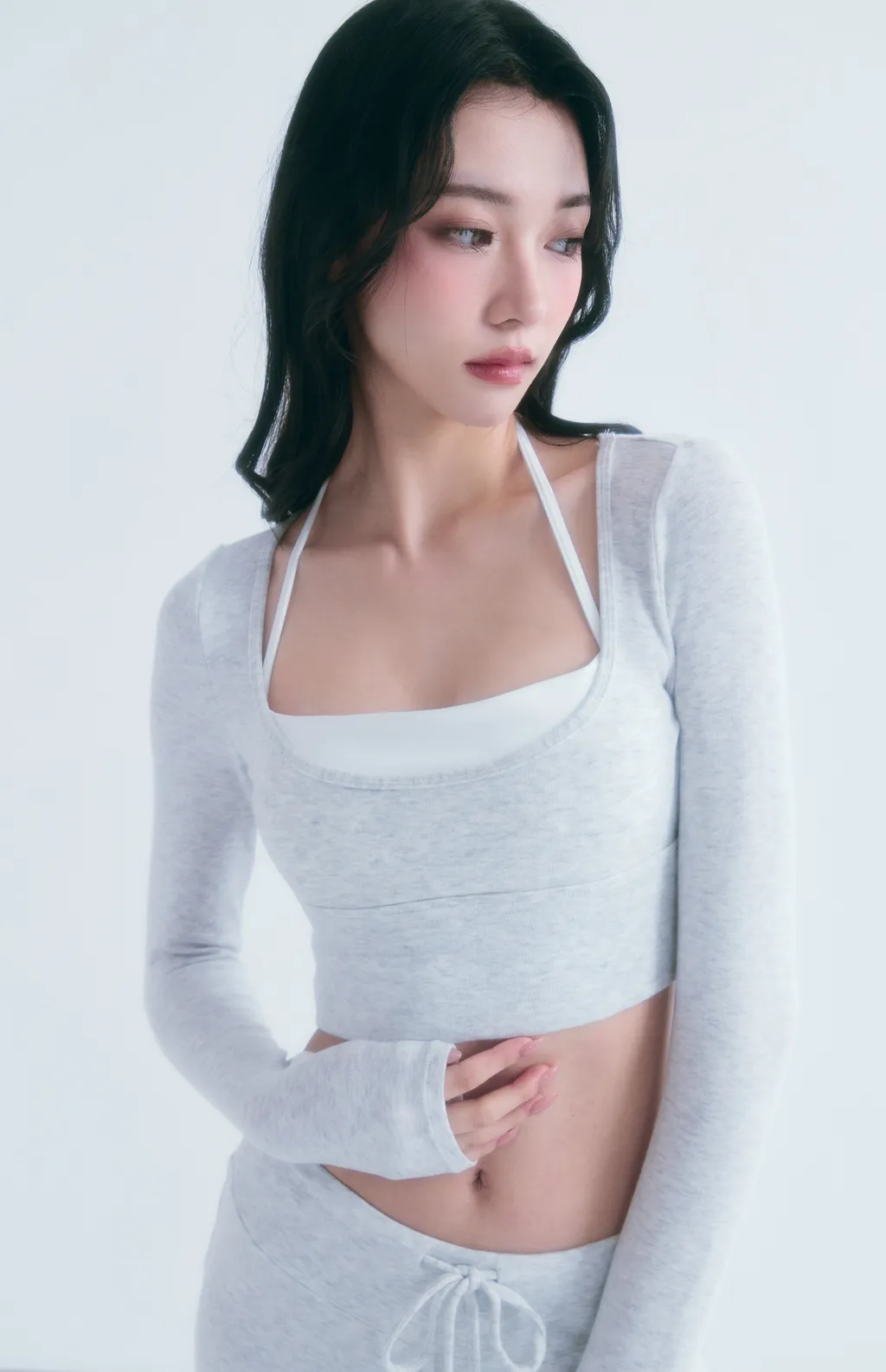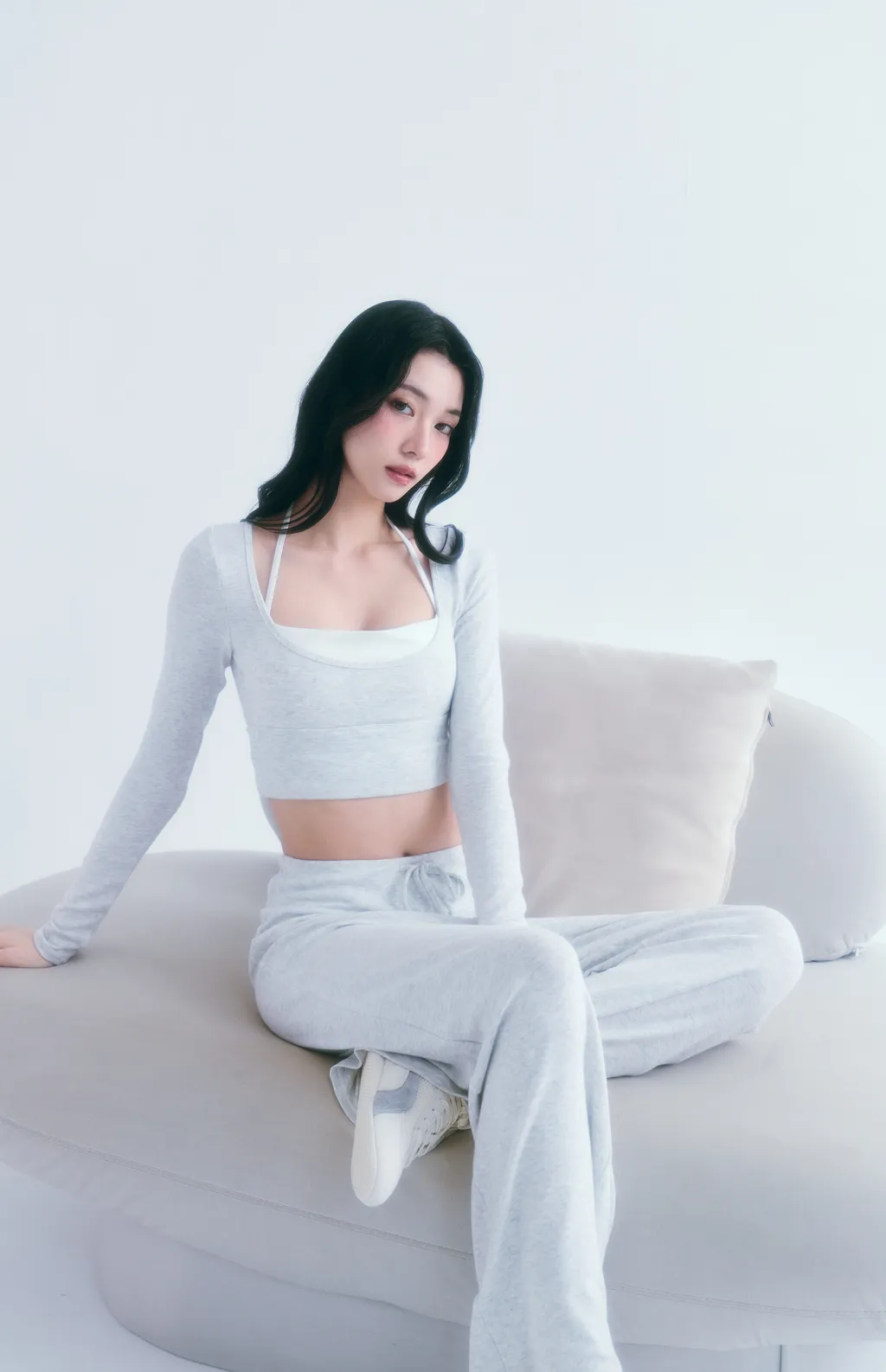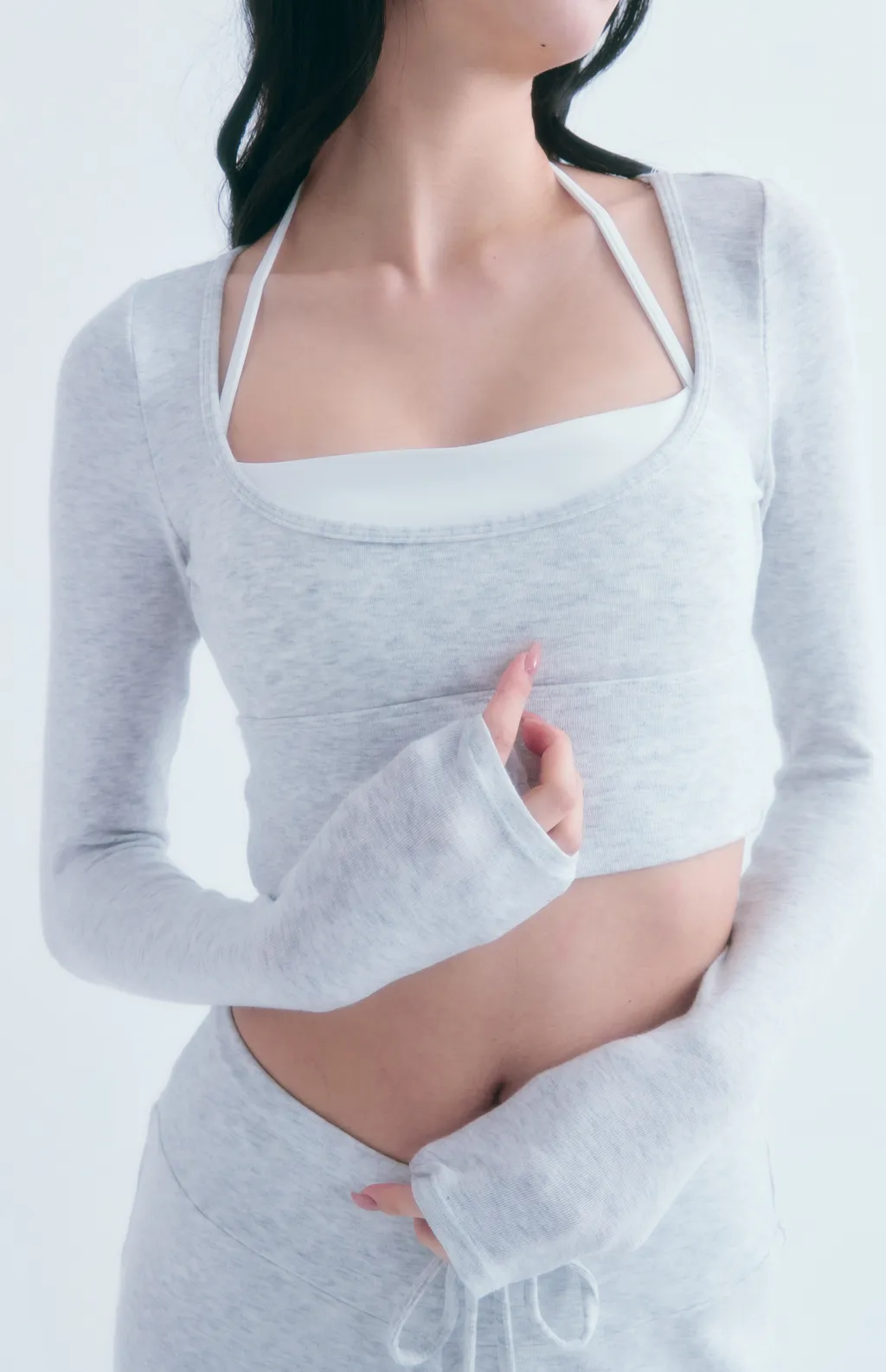 Snowline Soft|天鵝曲線 柔感修身運動套裝-淺灰色