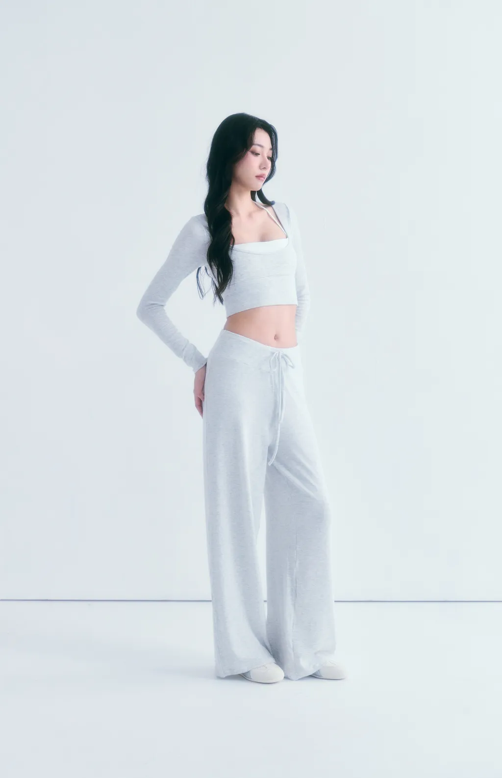Snowline Soft Pants|天鵝曲線 柔感慵懶棉褲-淺灰色