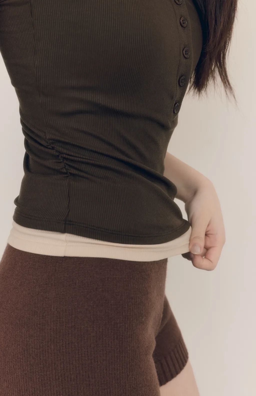 新品現貨商品將於下單後 3~7 個工作天內 依序出貨(不含例假日)Silhouette|親膚羅紋細肩帶撞色修身Bra Top-咖啡棕撞色雙肩帶設計 層次感自然顯瘦腰縮褶剪裁 修飾腰身曲線內建一體成型胸墊 免穿 bra top 也安心穩定包覆不跑杯 日常與運動都適合親膚彈性布料,柔軟貼身不緊繃面料:91.7%TENCEL™ (Lyocell) 8.3%Spandex顏色:咖啡棕、藍灰色尺寸:S、M、L、XLCozy Knit|高腰柔軟修身針織短褲-深咖棕冬季推薦柔軟針織短褲 採用寬幅螺紋收腰設計透過垂直的線條感在視覺上達到收腹效果完美隱藏小腹高腰剪裁加上針織的高彈特性不僅能穿出大長腿 更能提供無束縛的舒適感簡約版型設計 日常可搭配針織上衣、襯衫也能與運動上衣混搭 秋冬單穿或搭配褲襪都很適合是一件不挑風格 好搭配的秋冬休閒短褲面料:Cotton顏色:深咖棕、深灰色尺寸:S、M、L、XL model: 身高166cm、體重49kg、胸圍81cm、腰58cm、臀圍91cm(實穿S號)(手工測量,誤差±3cm皆正常範圍)(商品皆為實拍,與原色差異極小,室內光與戶外陽光顏色下略有些微差異,特殊色每個人認知能力不同,請三思後下單)