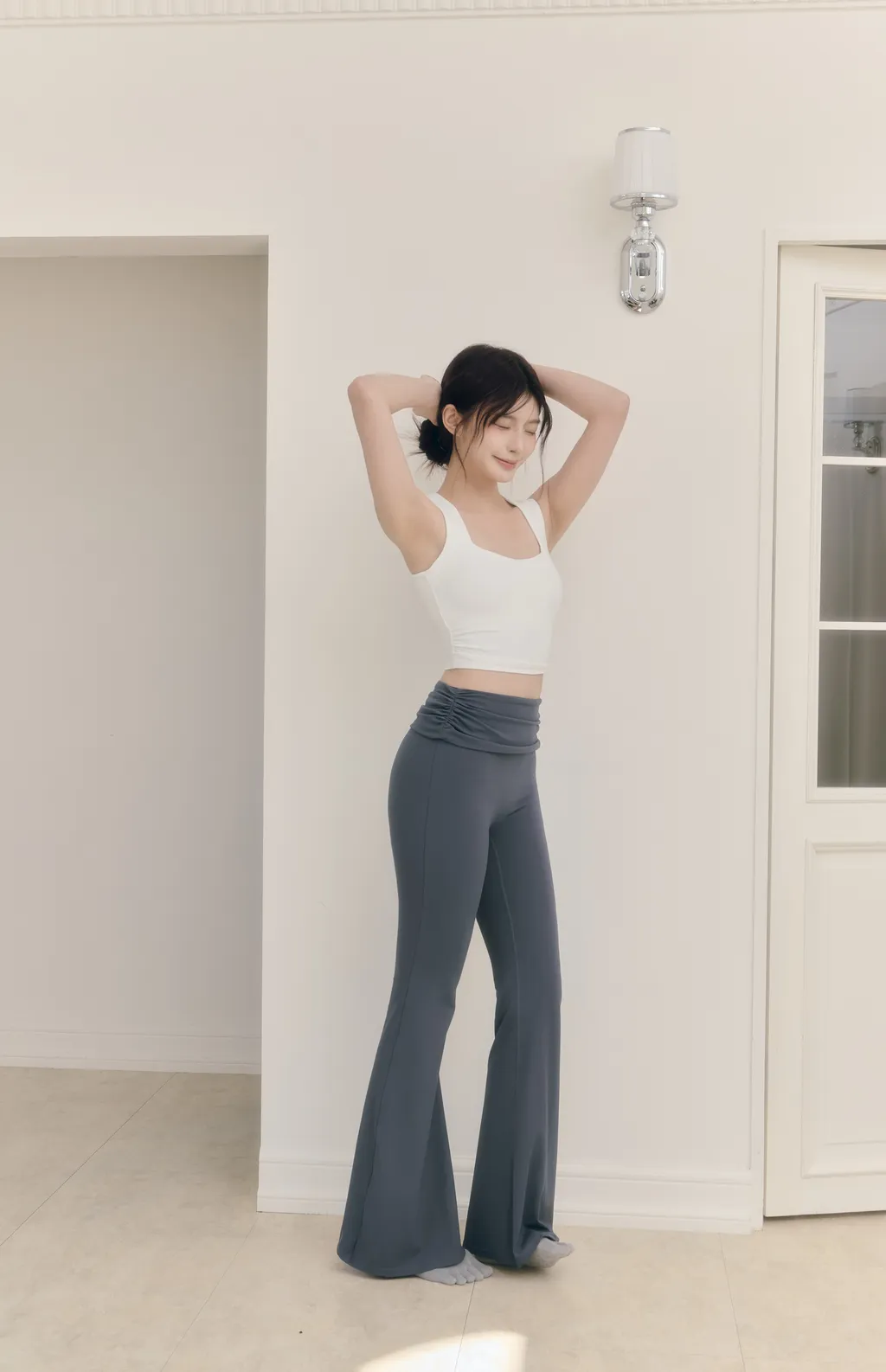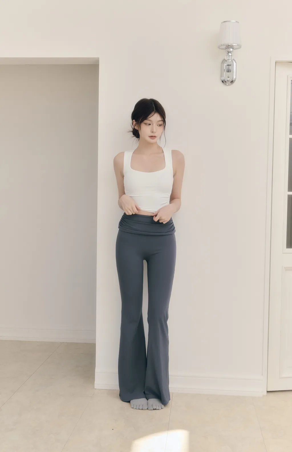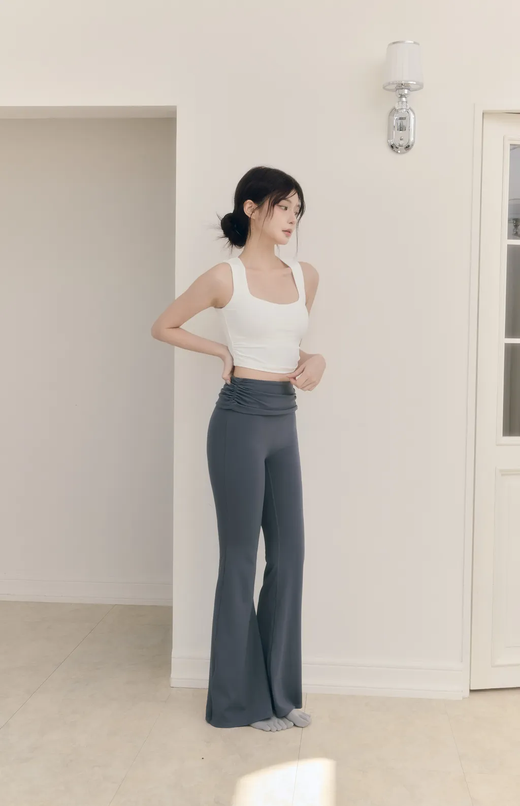 新品現貨商品將於下單後 3~7 個工作天內 依序出貨(不含例假日)Calm Skin|寬肩帶中強度包覆運動內衣-白色大方領領口設計修飾肩寬 突顯鎖骨線條側邊微細縮褶剪裁視覺收腰剪裁 自帶修身顯瘦效果內裡雙層布料提升包覆度 穿著穩定不透光加寬舒適肩帶有效分散壓力 保持胸型穩定不移位可拆卸胸墊 方便清洗更換柔軟親膚 高彈透氣吸濕排汗面料:78%Polyamide 22%Elastane顏色:黑色、白色尺寸:S、M、L、XLActive Flow|縮褶翻腰大彈力瑜珈喇叭褲-藍灰色縮褶翻腰設計修飾腹部線條 輕鬆遮住小肚子無尷尬線剪裁 運動自在不拘束修身喇叭褲腳版型 拉長腿部比例柔軟親膚大彈力布料吸濕排汗不黏膩 保持全天候乾爽兼顧運動需求與日常穿搭面料:78%Polyamide 22%Elastane顏色:黑色、淺奶棕、藍灰色尺寸:S、M、L、XL model: 身高166cm、體重49kg、胸圍81cm、腰58cm、臀圍91cm(實穿S號)(手工測量,誤差±3cm皆正常範圍)(商品皆為實拍,與原色差異極小,室內光與戶外陽光顏色下略有些微差異,特殊色每個人認知能力不同,請三思後下單)