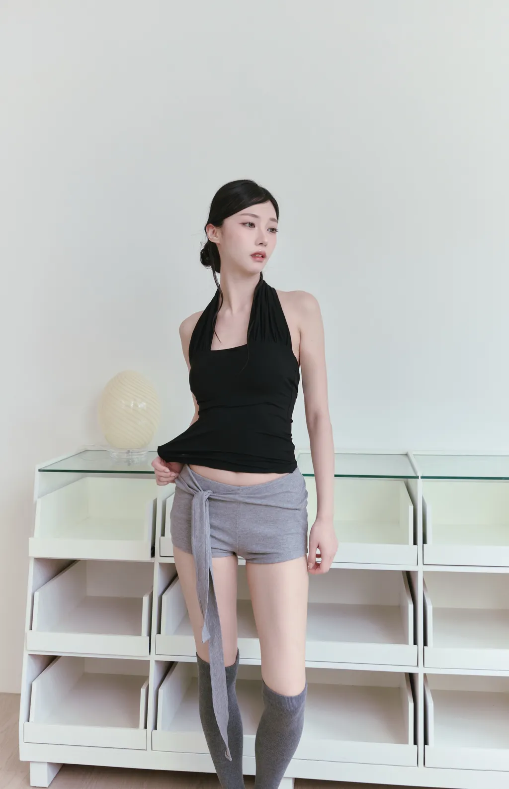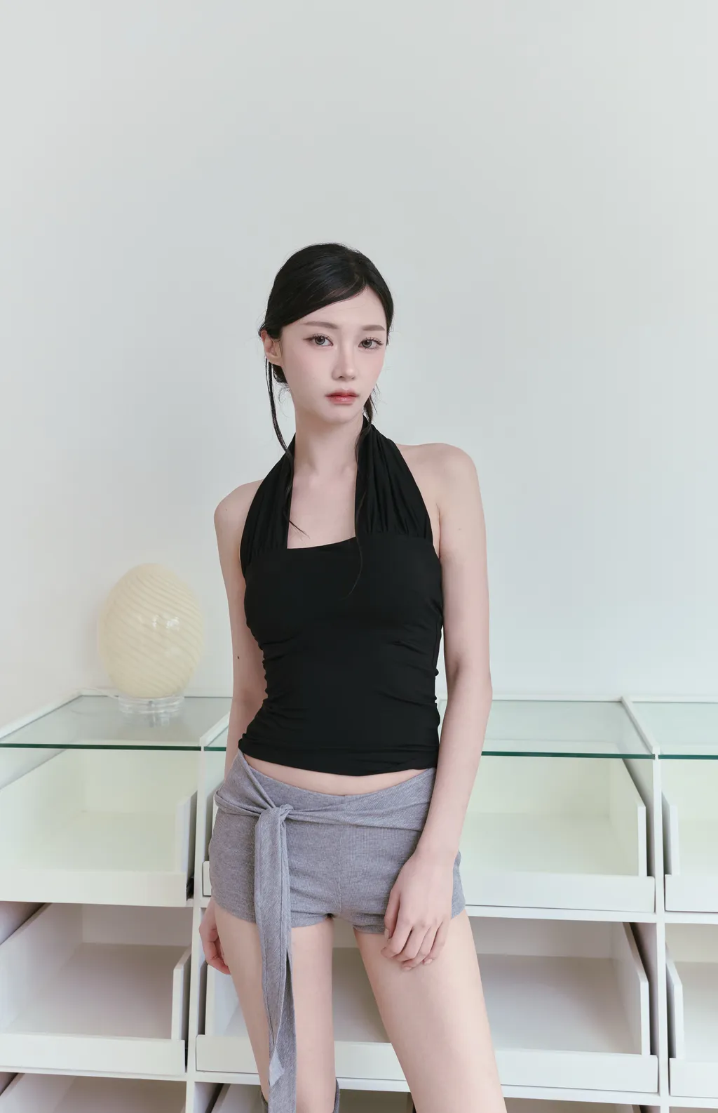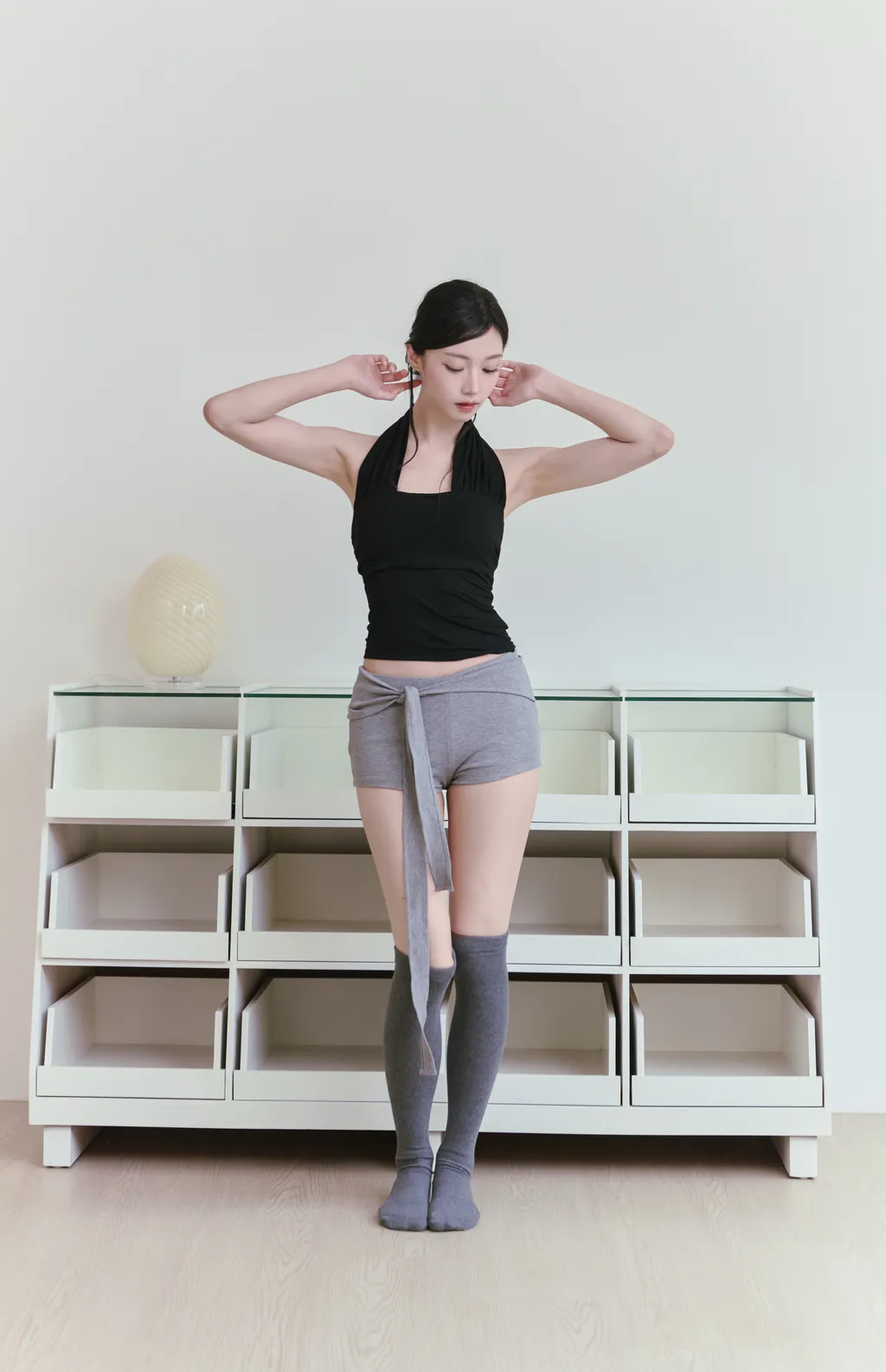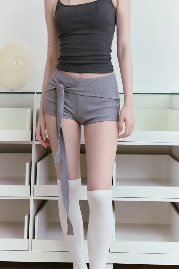 Ribbon Wrap|低腰側綁帶芭蕾棉感短褲-灰色