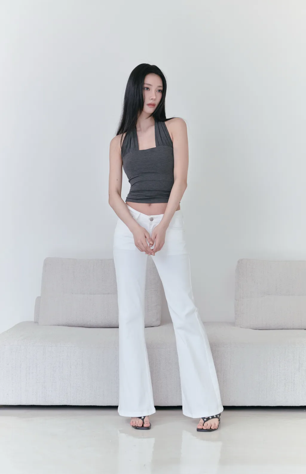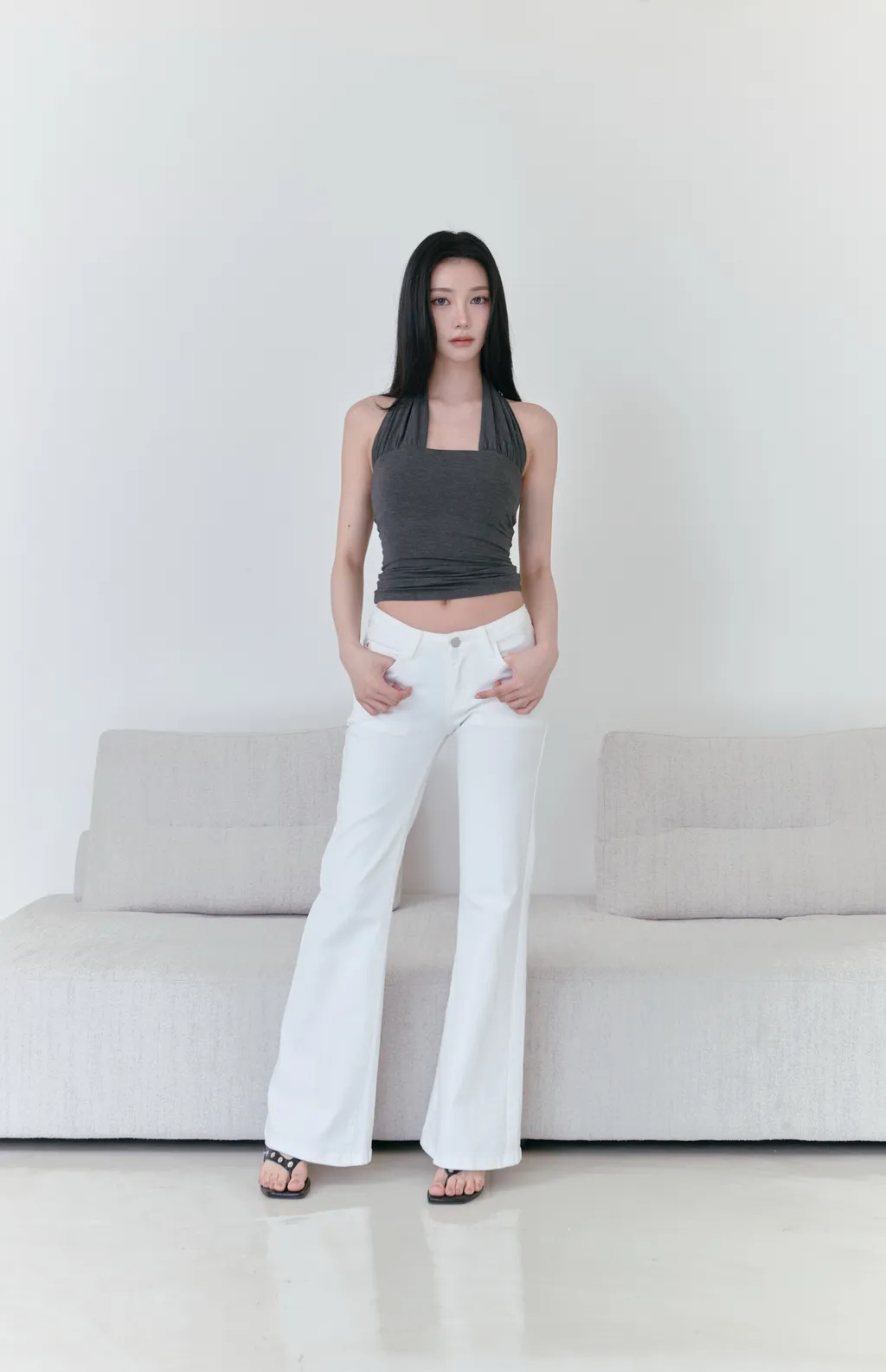 Low Rise Flare|低腰喇叭修身牛仔長褲-白色