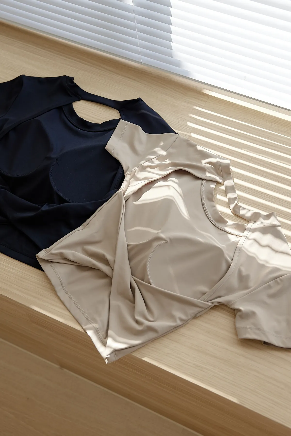 彈性圓領緊身上衣 固定式帶胸墊Bra Top