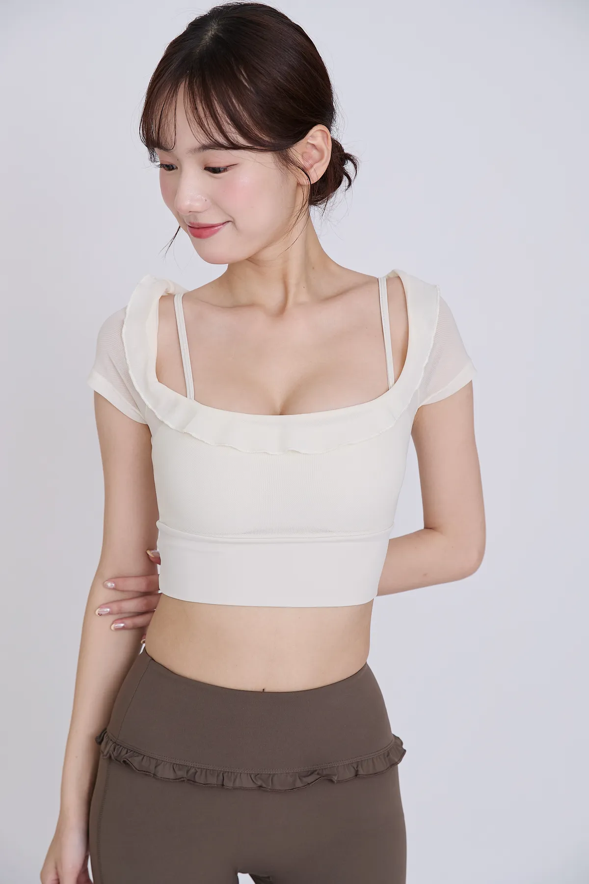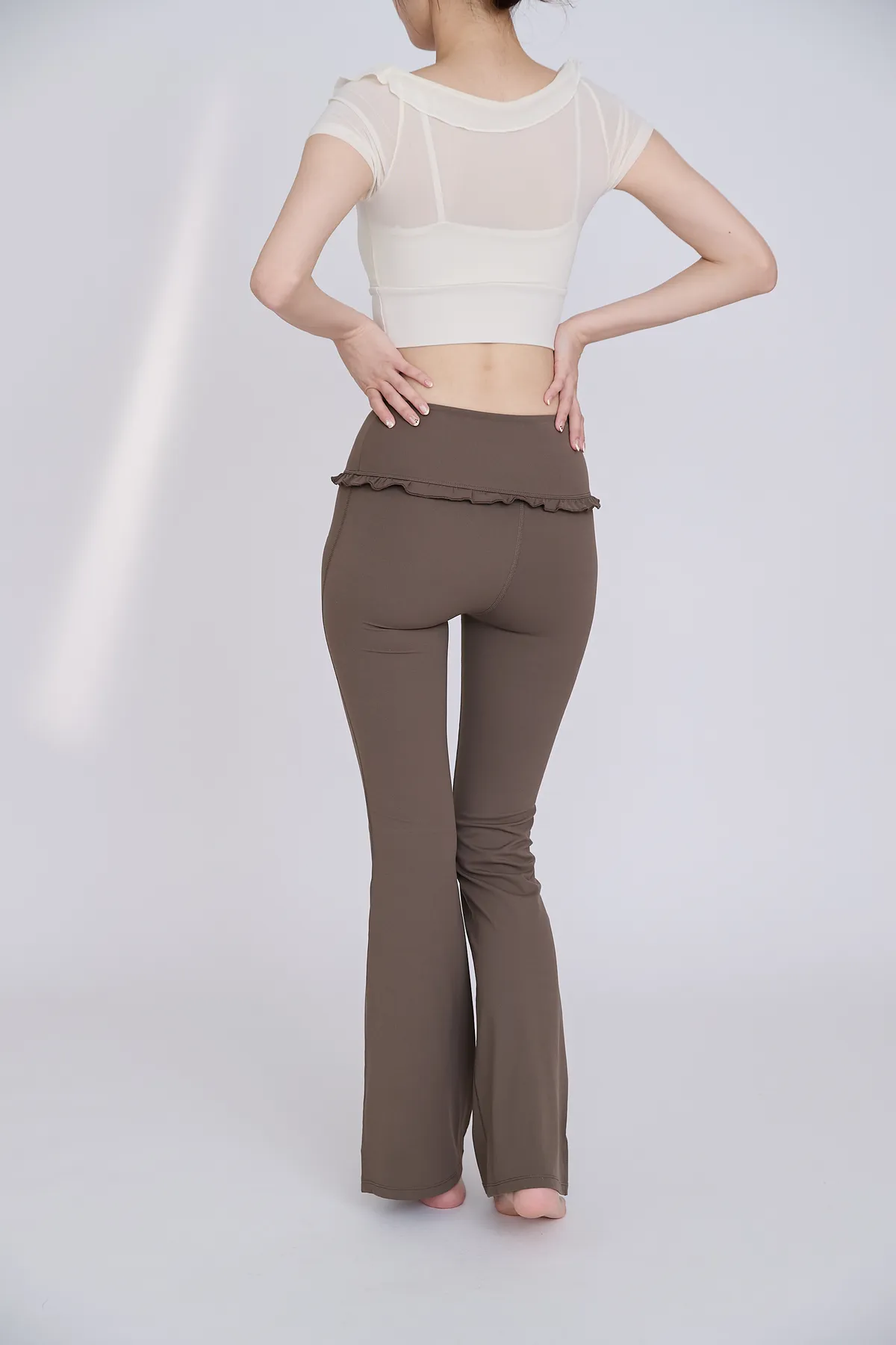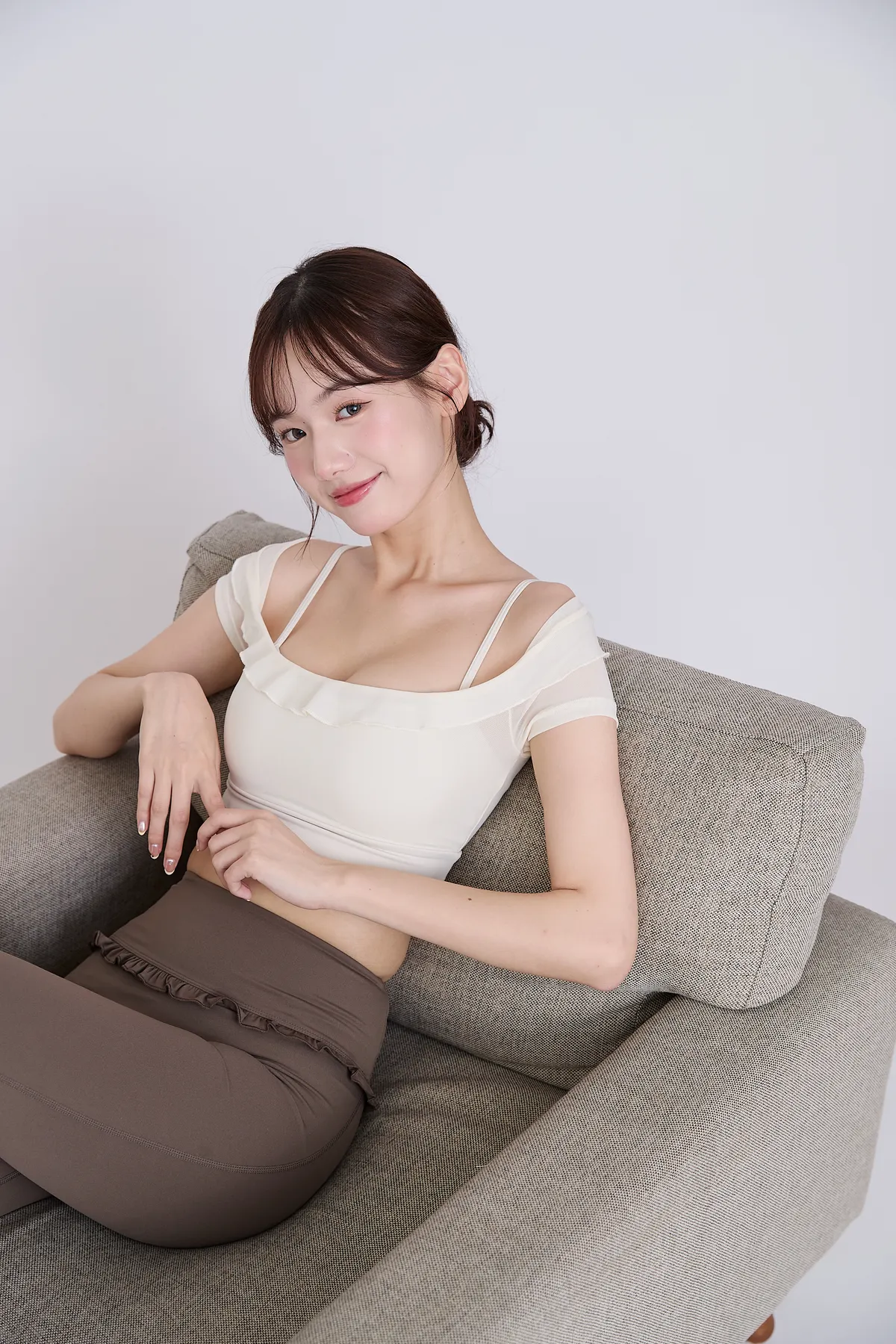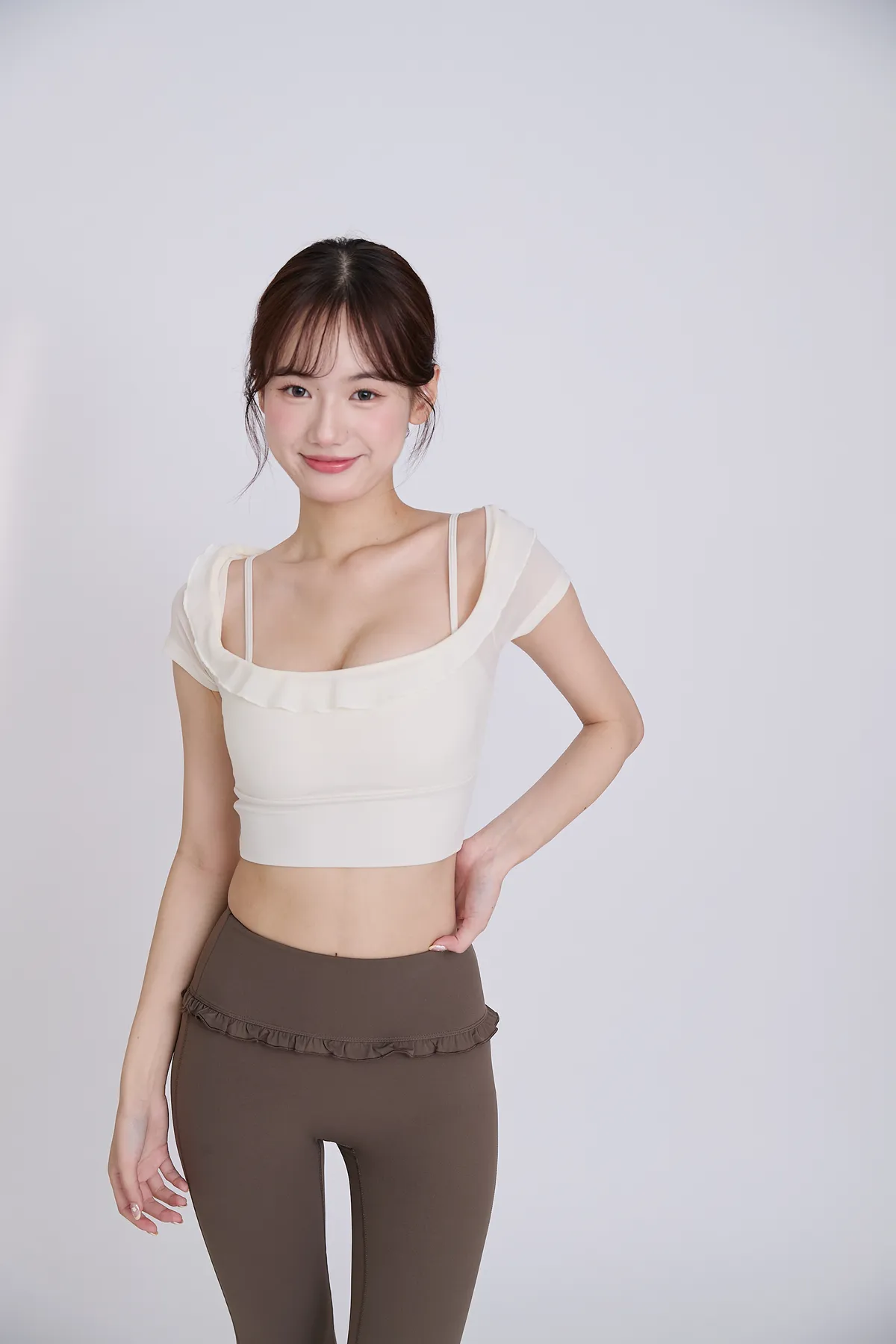 微透舒適包覆網紗短袖Bra Top-象牙白固定式胸墊 集中穩定不跑位柔紗花邊一字領 修飾鎖骨線條純慾微透網紗拼接設計加寬下擺 穩定支撐不易上捲裸感高彈布料 柔軟親膚不緊繃面料:80%Nylon 20%Spendex網紗:95%Nylon 5%Spendex顏色:粉色、象牙白、黑色尺寸:S、M、L、XL 微甜花邊高腰裸感喇叭褲-茶棕色少女感波浪花邊高腰設計九分高腰收腹設計 提供穩定包覆感緊身剪裁貼合身型 有效修飾腿部線條提臀剪裁提升曲線感 下擺微喇設計 巧妙遮蓋小腿肉肉 修飾腿部線條面料:75%Nylon 25%Spendex顏色:櫻花粉、茶棕色尺寸:S、M、L、XL model: 身高167cm、體重47kg、胸圍81cm、腰58cm、臀圍86cm(實穿S號)(手工測量,誤差±3cm皆正常範圍)(商品皆為實拍,與原色差異極小,室內光與戶外陽光顏色下略有些微差異,特殊色每個人認知能力不同,請三思後下單)