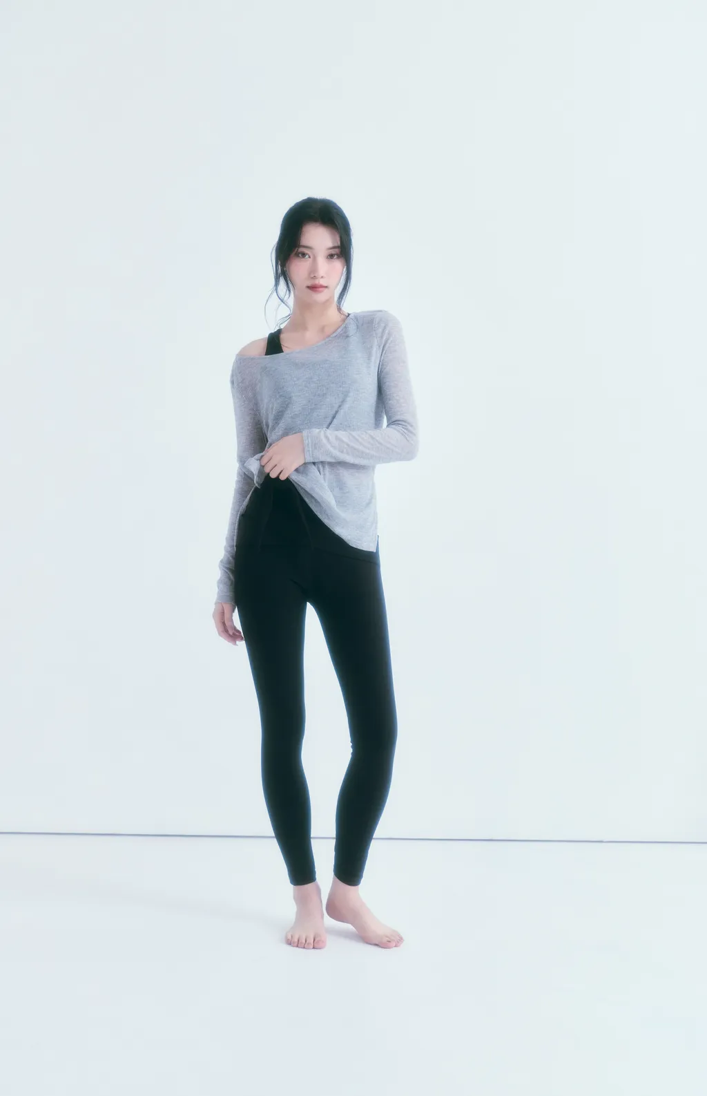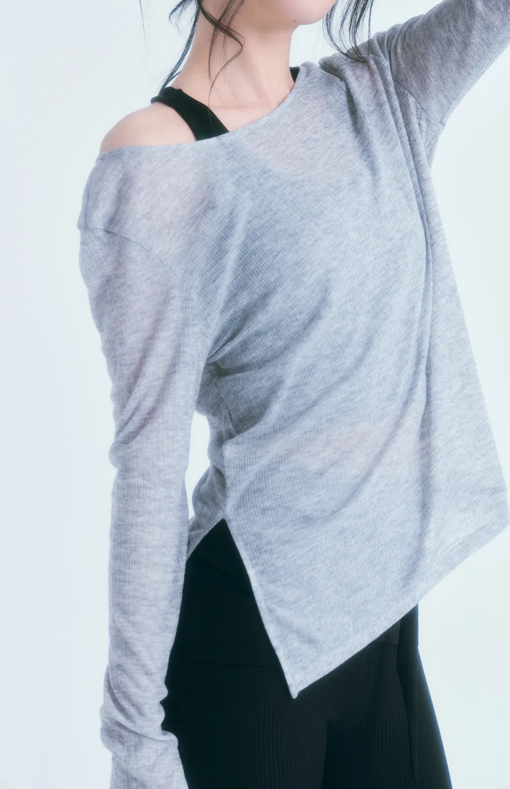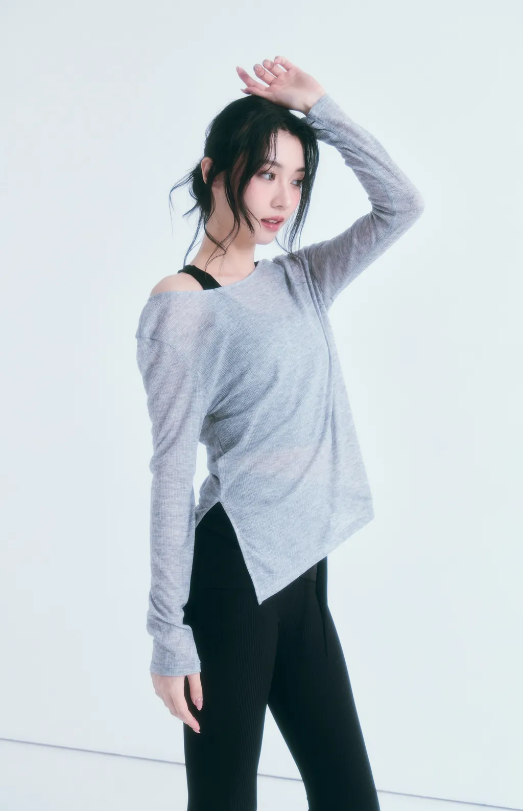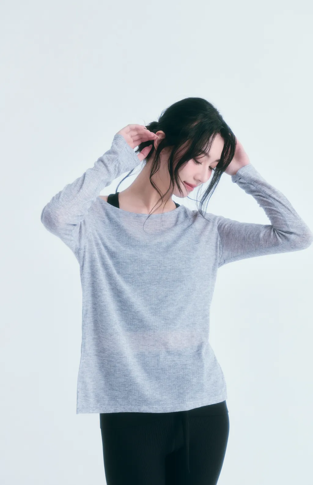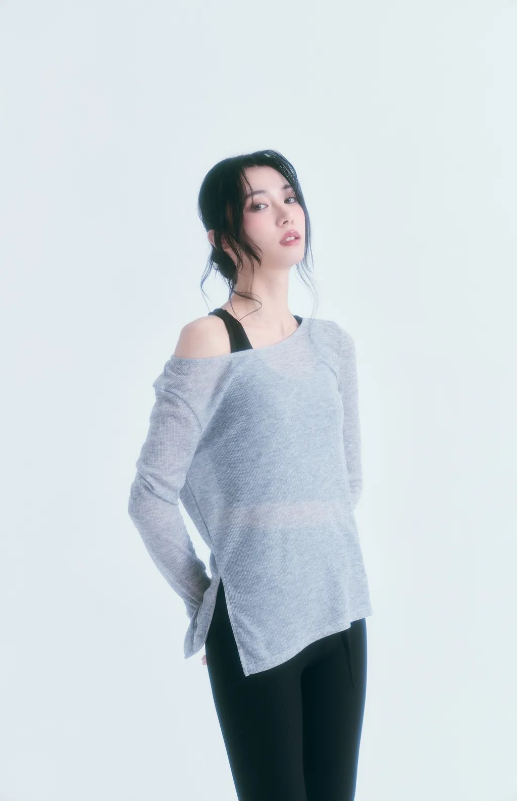 Cozy Line|親膚船領開衩長袖上衣-深灰色