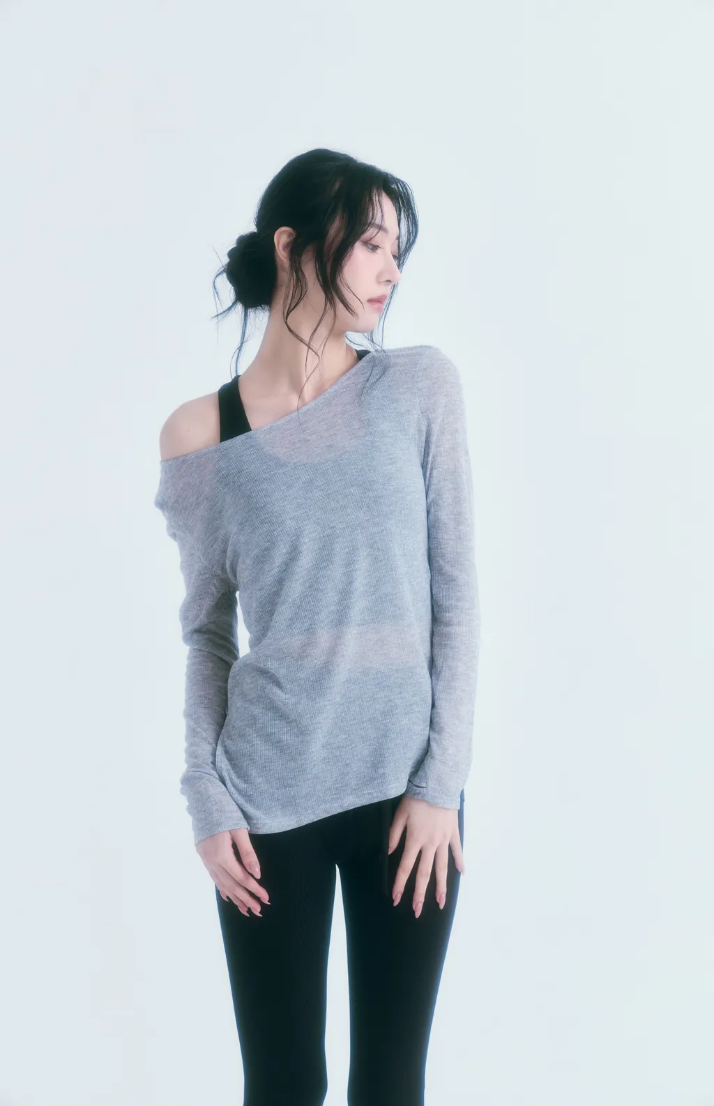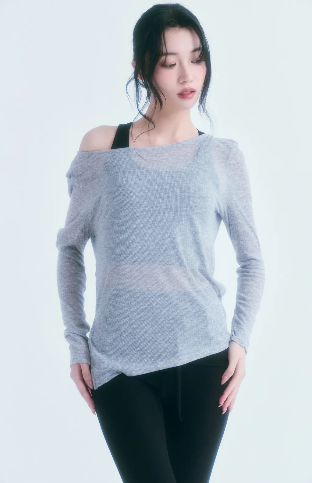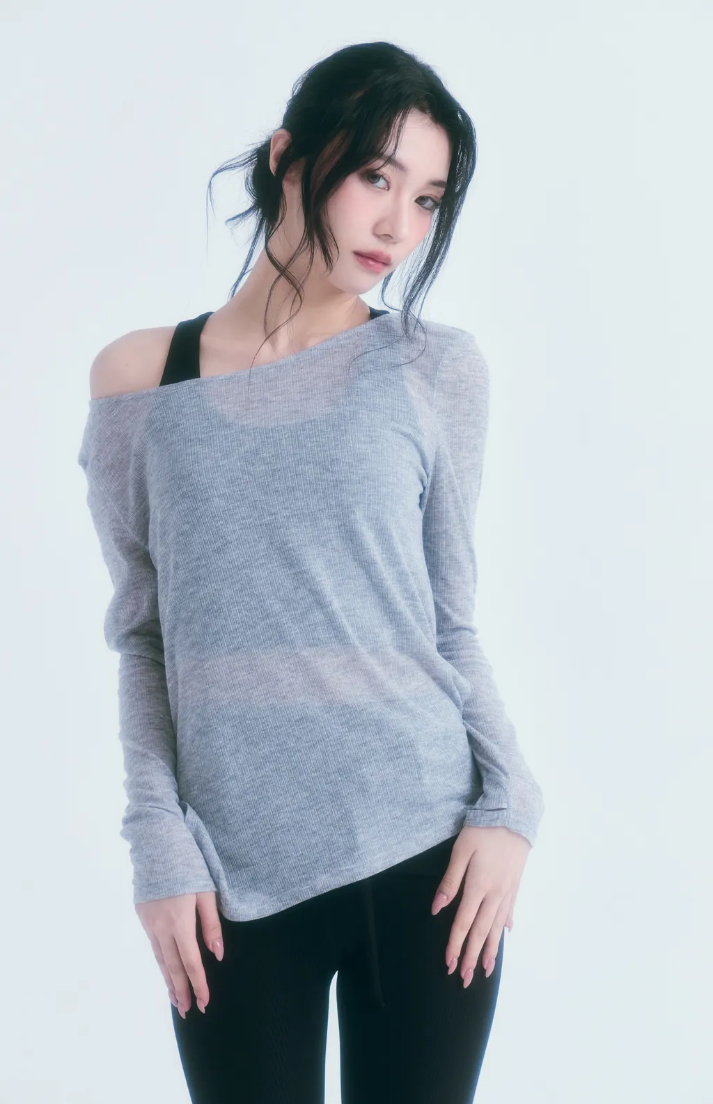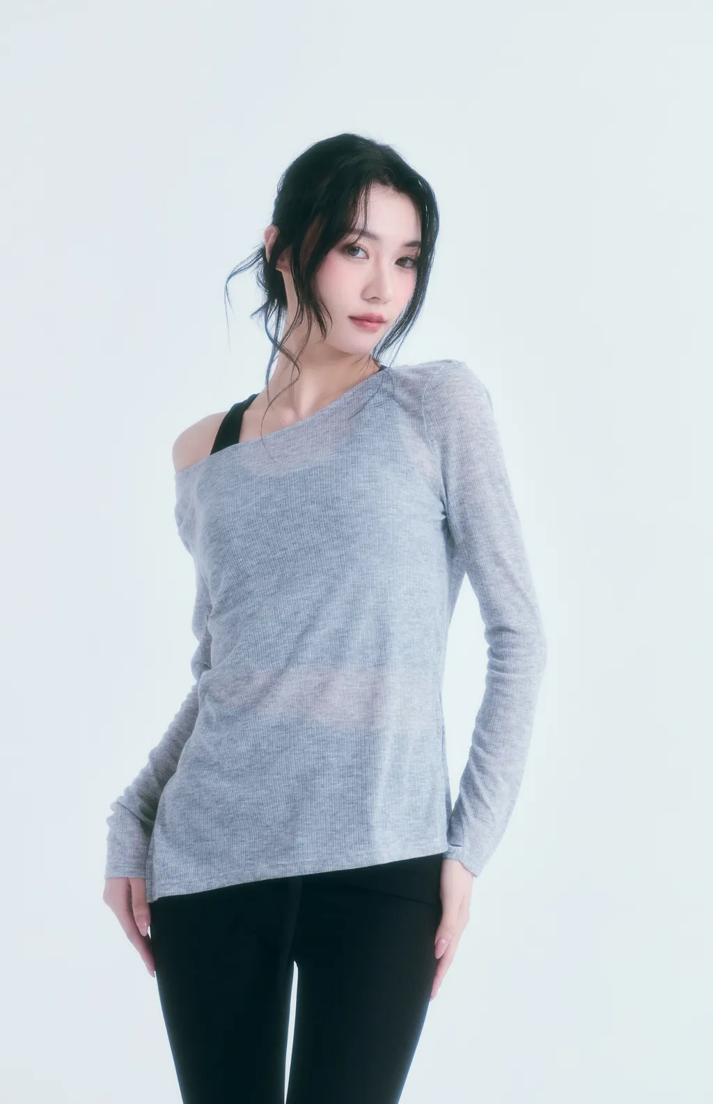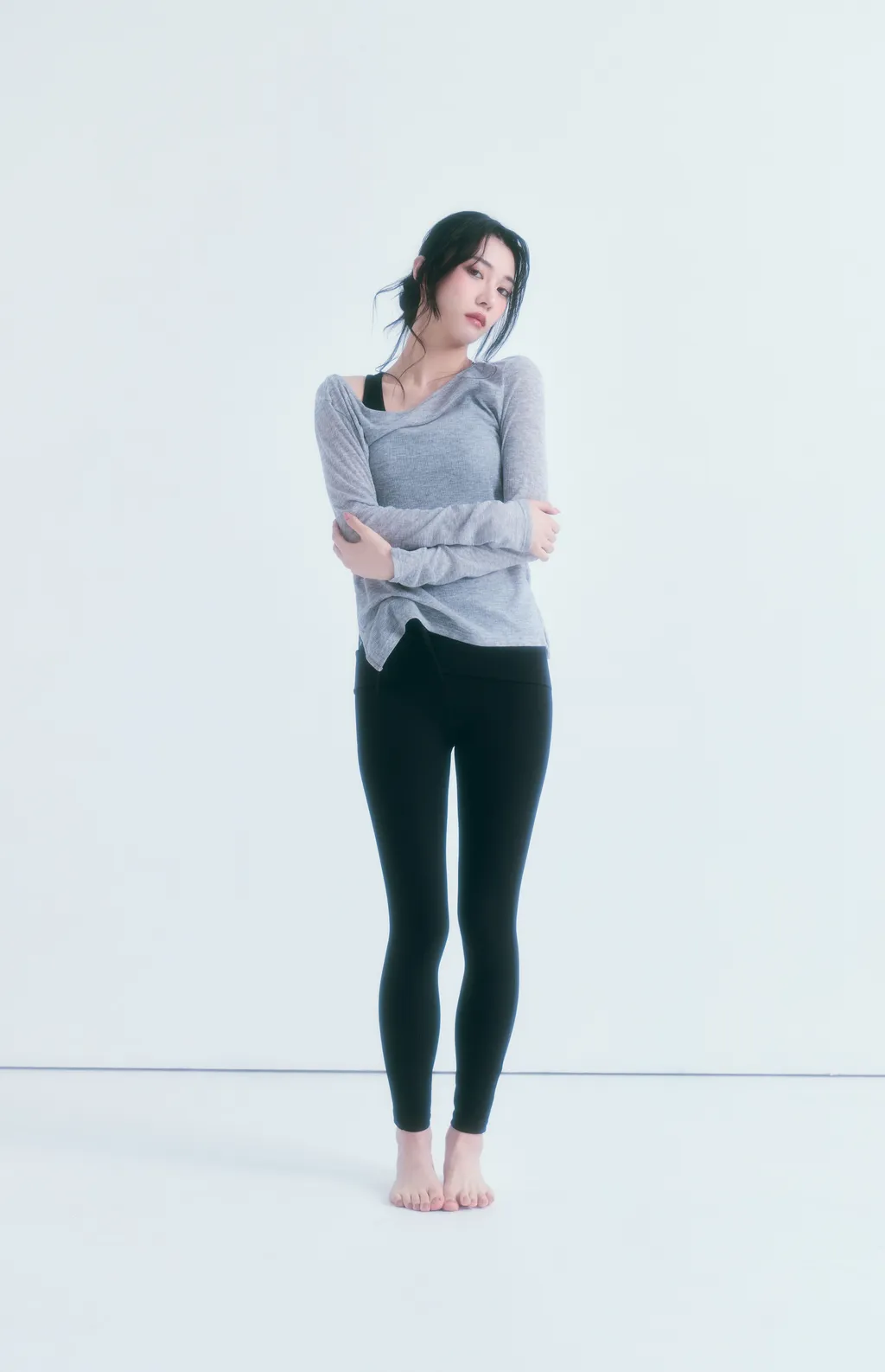 Cozy Line|親膚船領開衩長袖上衣-深灰色