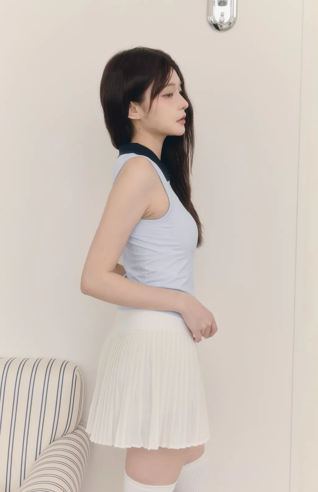 Flow Pleats|收腹設計款網球短裙-白色