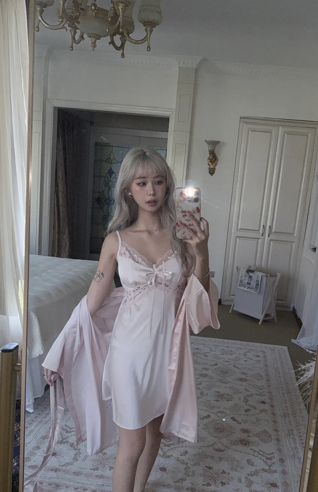 性感兩件式腰邊蕾絲鏤空緞面睡衣-粉色自帶可拆卸式胸墊 方便拆洗、自由更換可調節肩帶顏色:月光藍、粉色、白色、黑色尺寸:M、L (手工測量,誤差±3cm皆正常範圍)(商品皆為實拍,與原色差異極小,室內光與戶外陽光顏色下略有些微差異,特殊色每個人認知能力不同,請三思後下單)