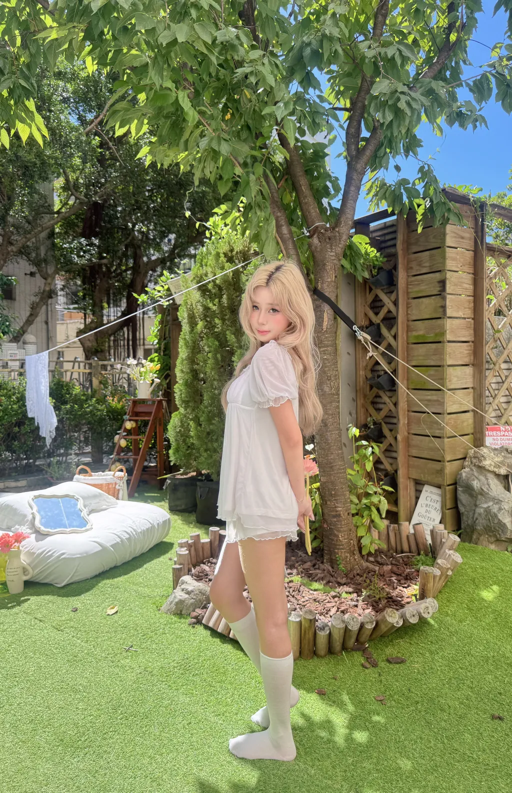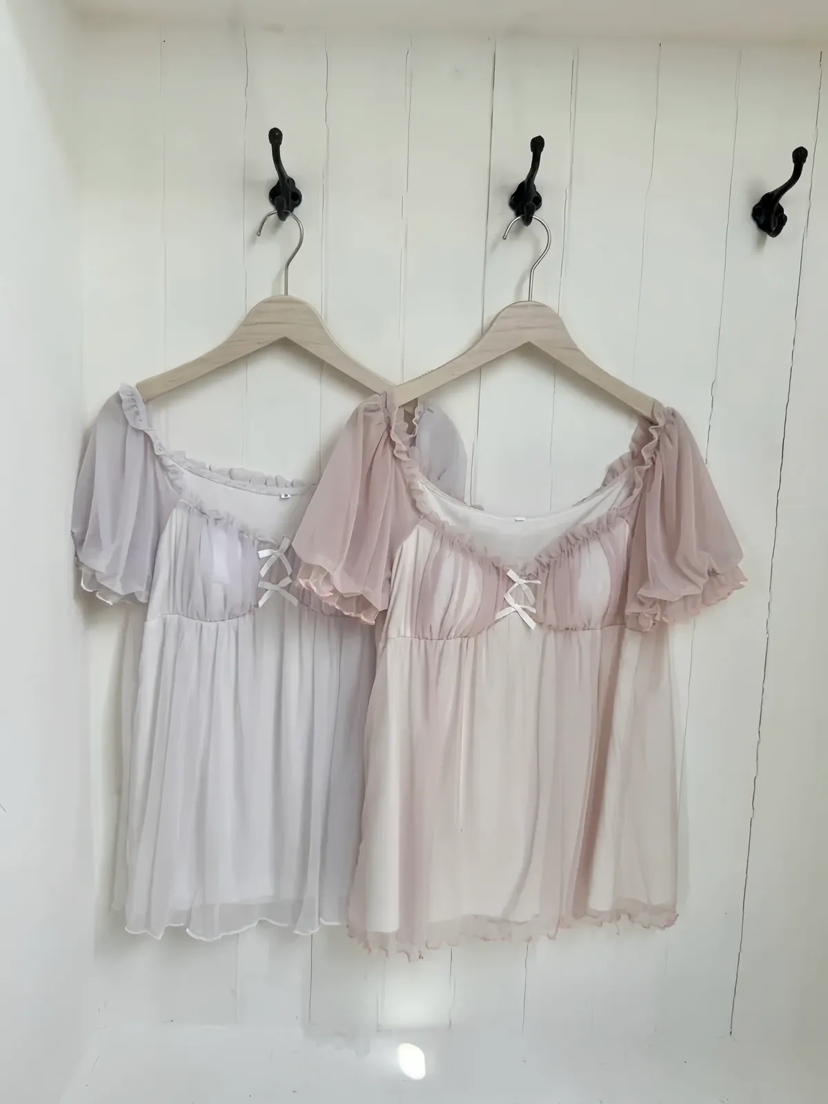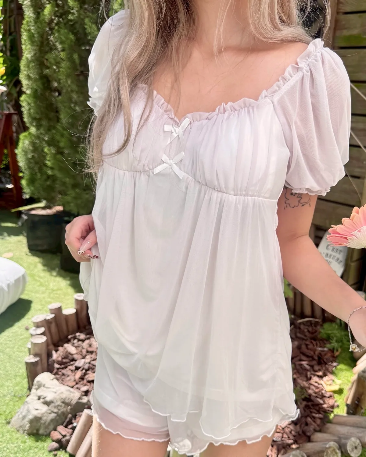 胸前小蝴蝶結點綴,搭配泡泡袖設計,展現甜美少女感