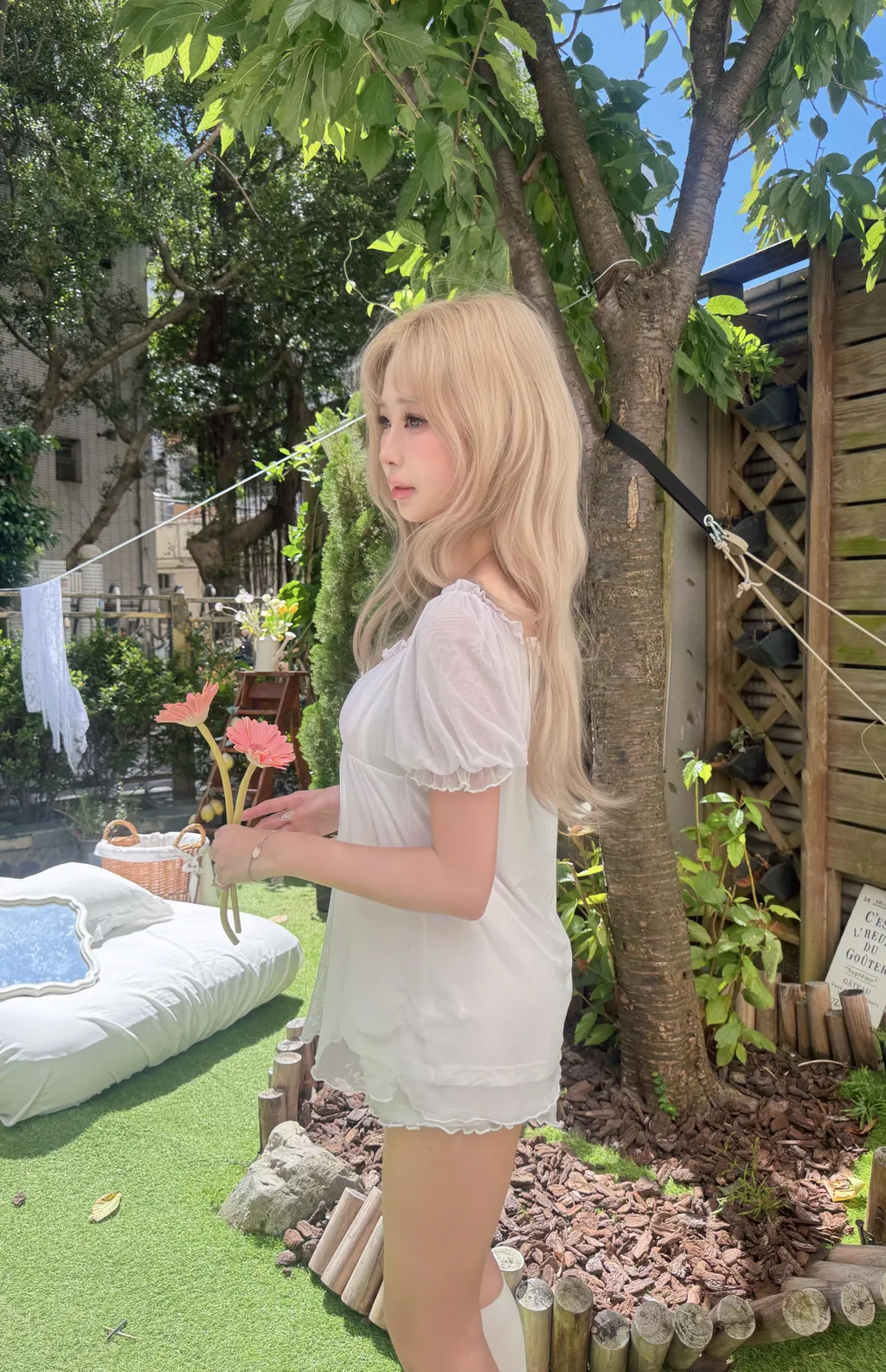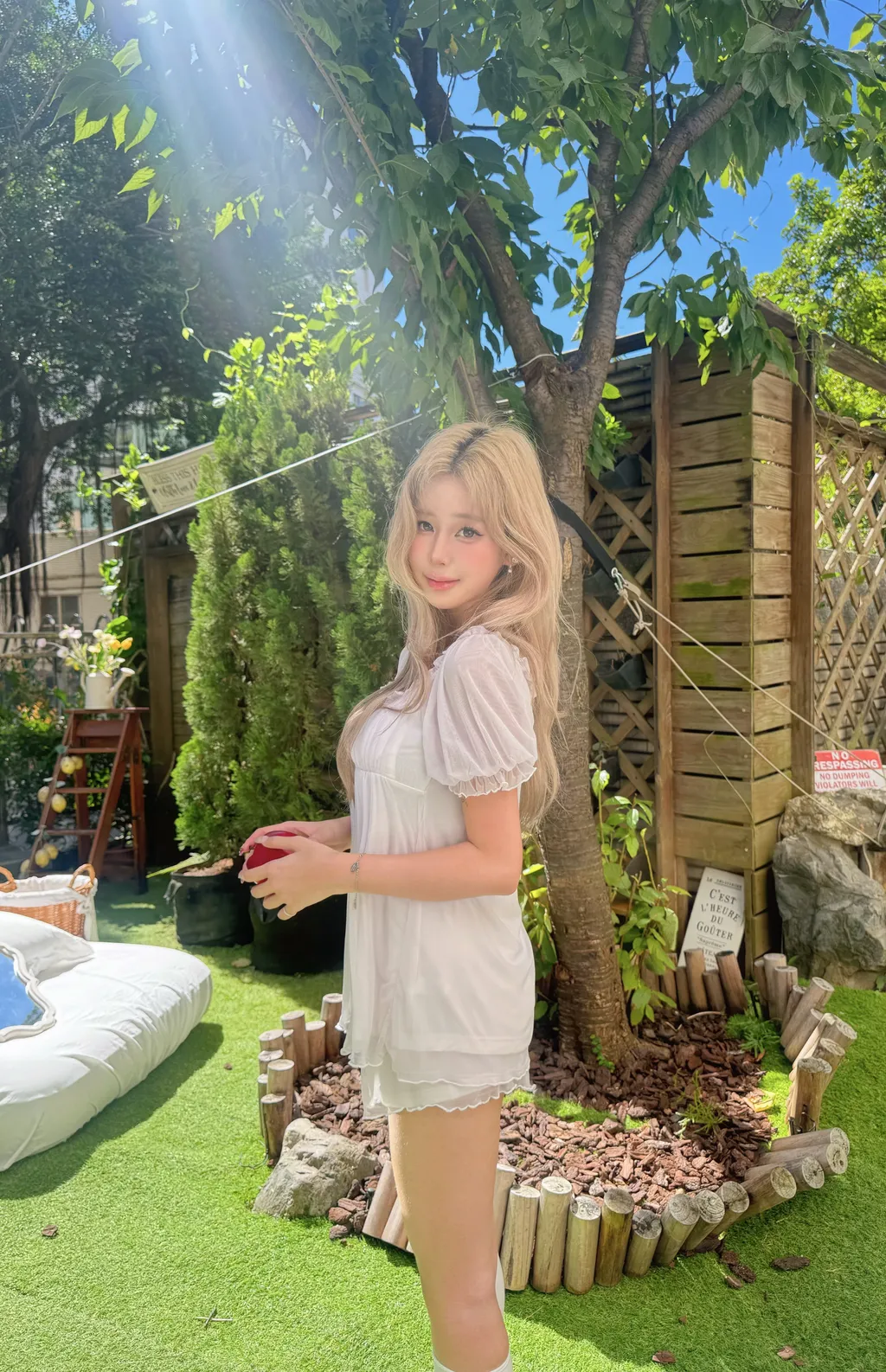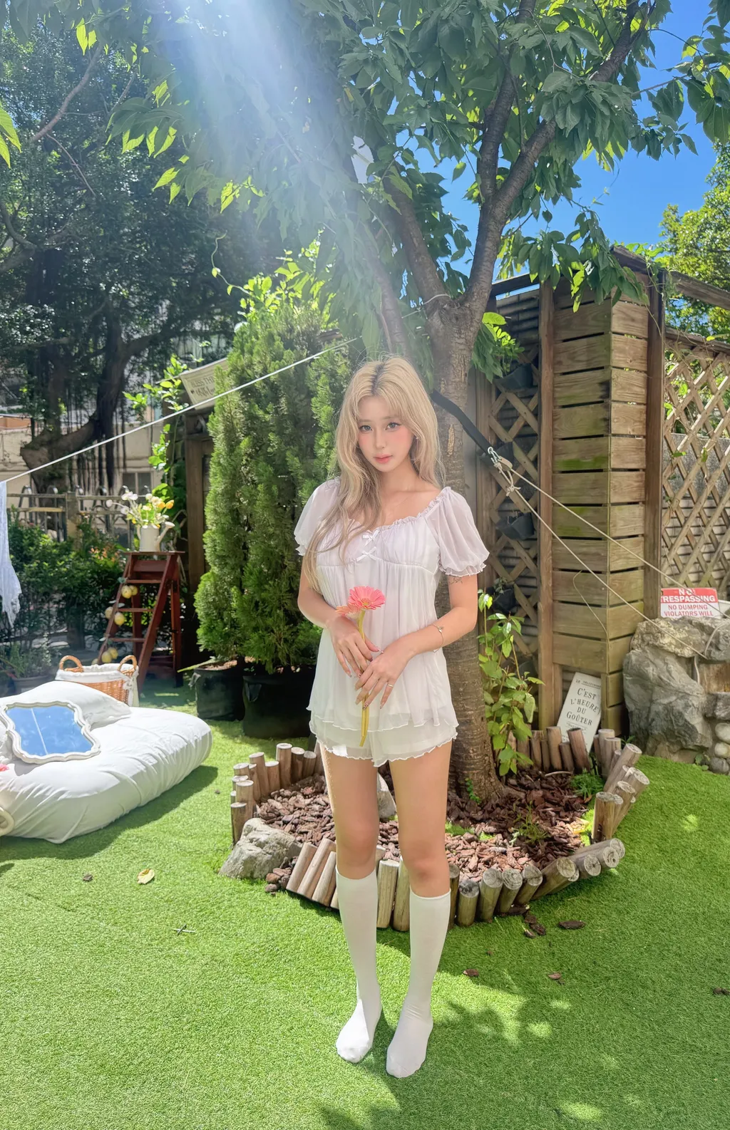 胸前小蝴蝶結點綴,搭配泡泡袖設計,展現甜美少女感
